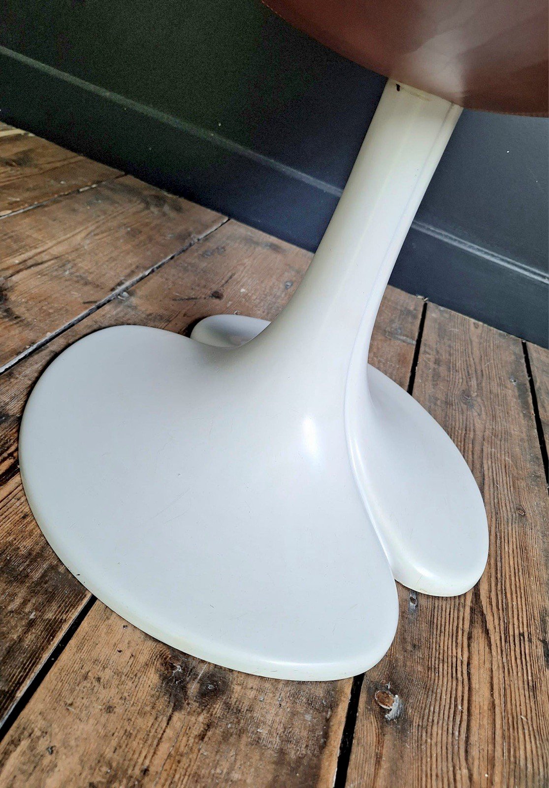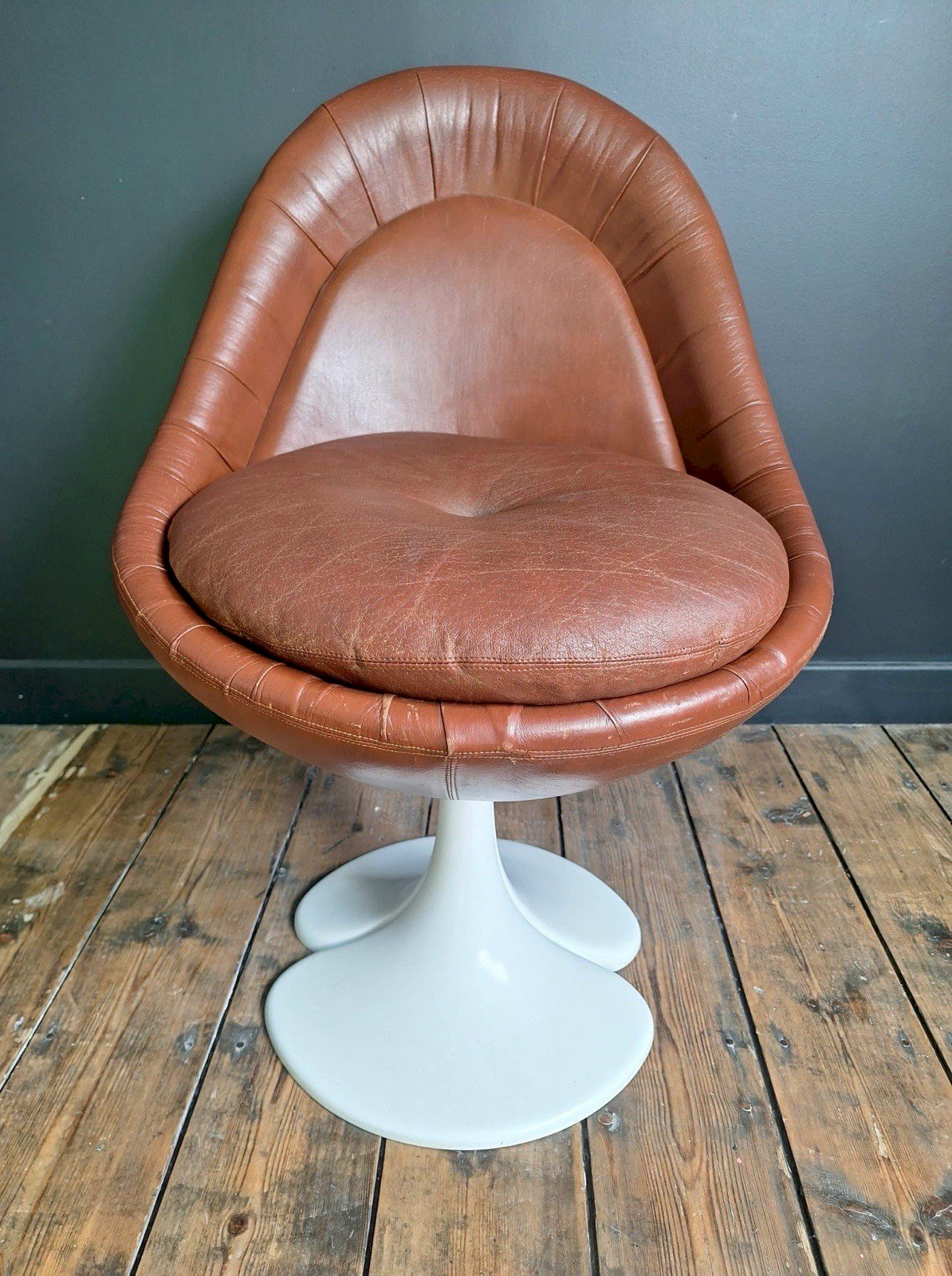 Merci de m’écrire si vous souhaitez me faire une offre. Suite de 4 fauteuils vintage Christian Adam modèle trèfle, meubles sièges design Dimensions 54x60xh80, assise 50cm. Chaises forme oeuf (egg) en skaï marron des années 1970. Design Space age. Quelques traces d’usage : éraflures et griffes sur le simili cuir, quelques éclats sur les pieds, un revêtement sous l’assise manquant (invisible). Les chaises sont pivotantes. Remise à mon domicile ou livraison possible via transporteur (ex 80€ vers Paris et région parisienne, me contacter pour d’autres destinations). Les délais de livraison de 2 à 4 jours sont imposés par et sont donc donnés à titre purement indicatif. Scandinave guariche table bureau rétro Type:Fauteuil