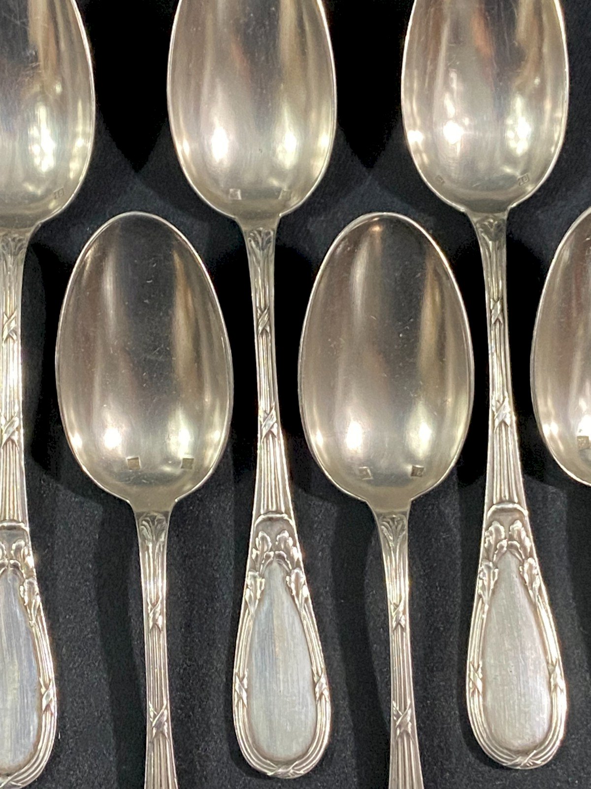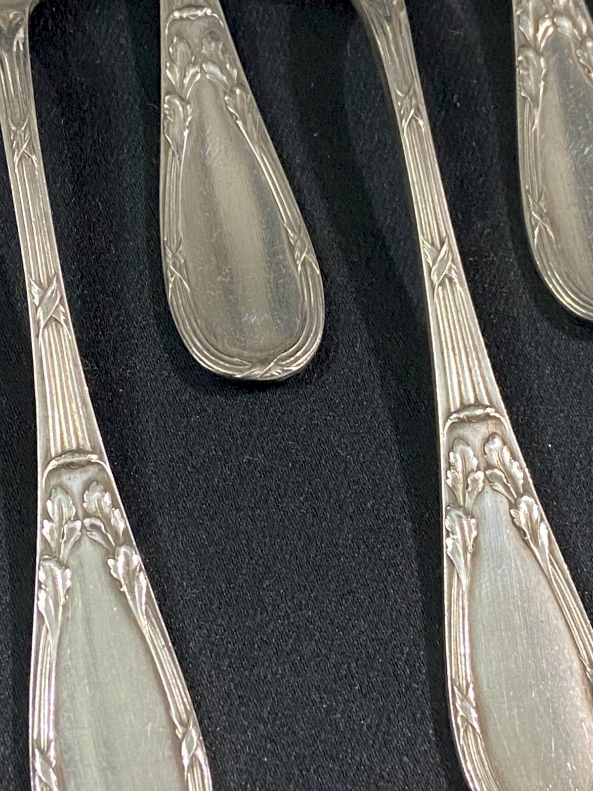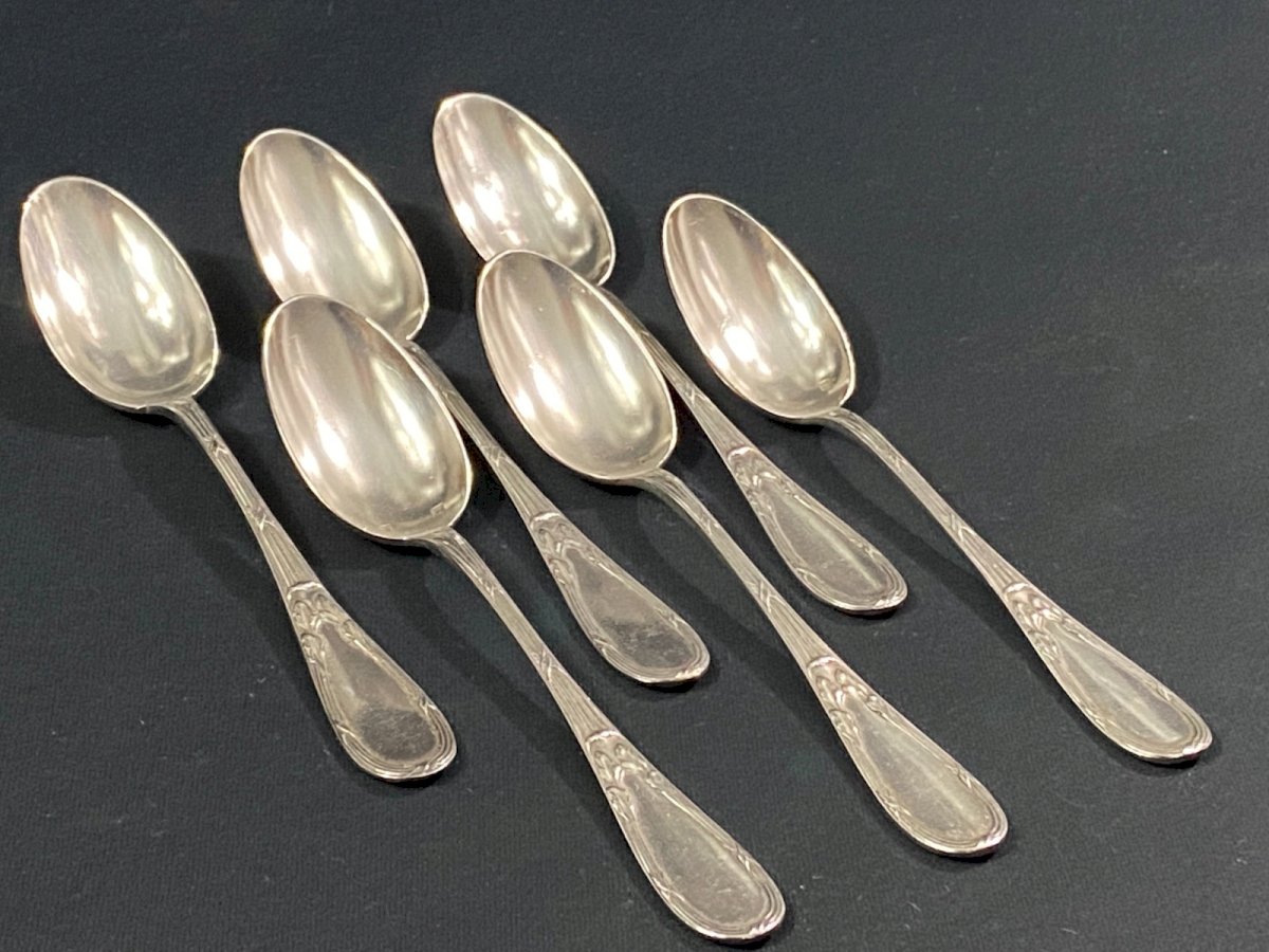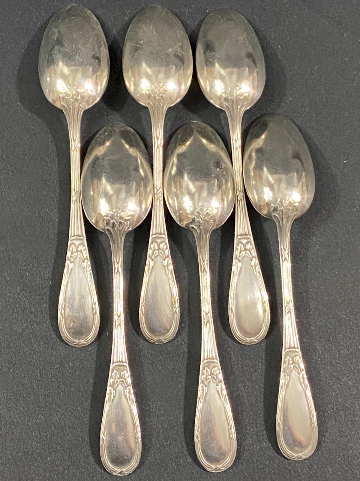Suite de 6 petites cuillères en métal argenté de style Louis XVI