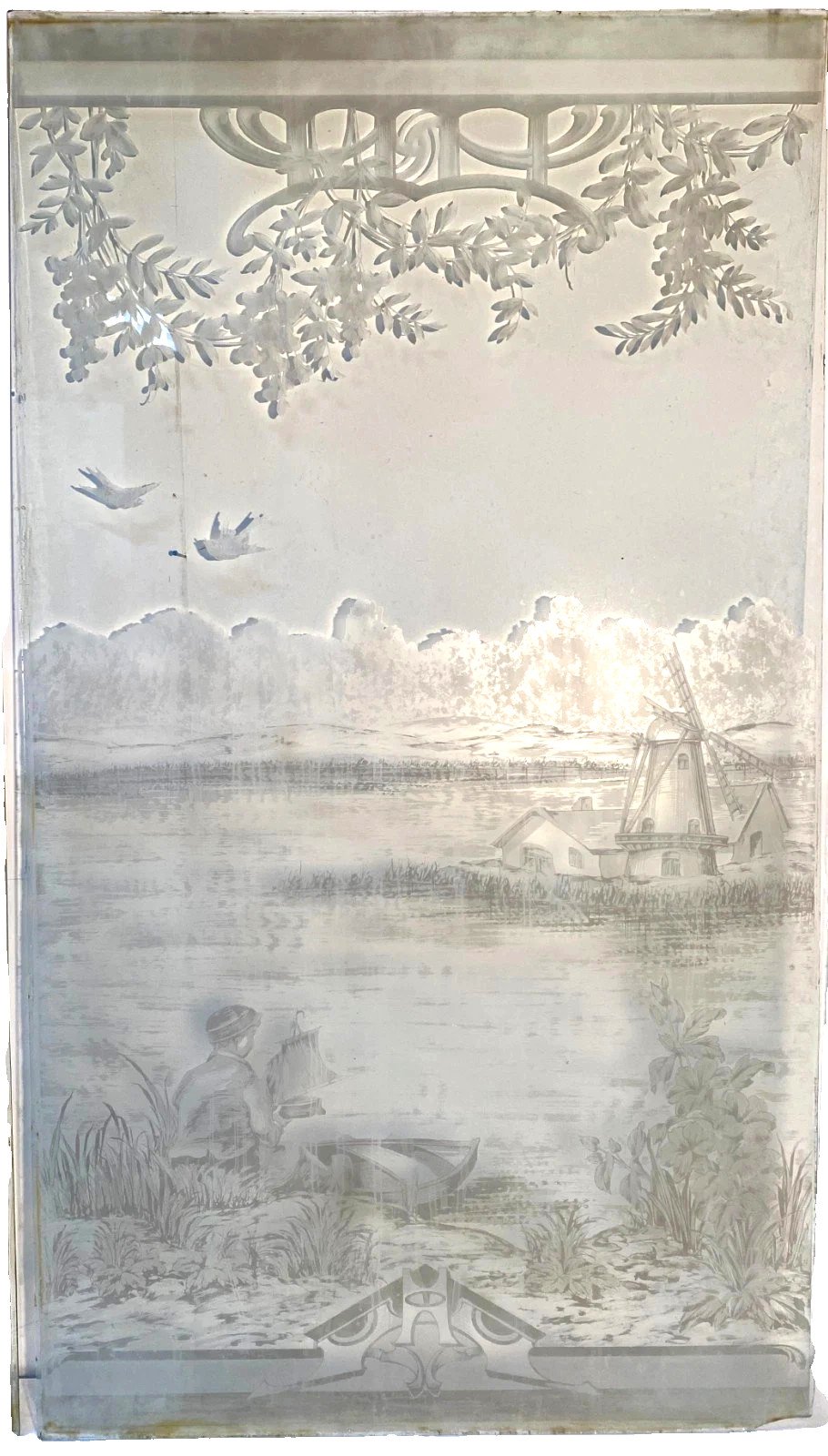 Suite de trois panneaux en verre gravé XX siècle