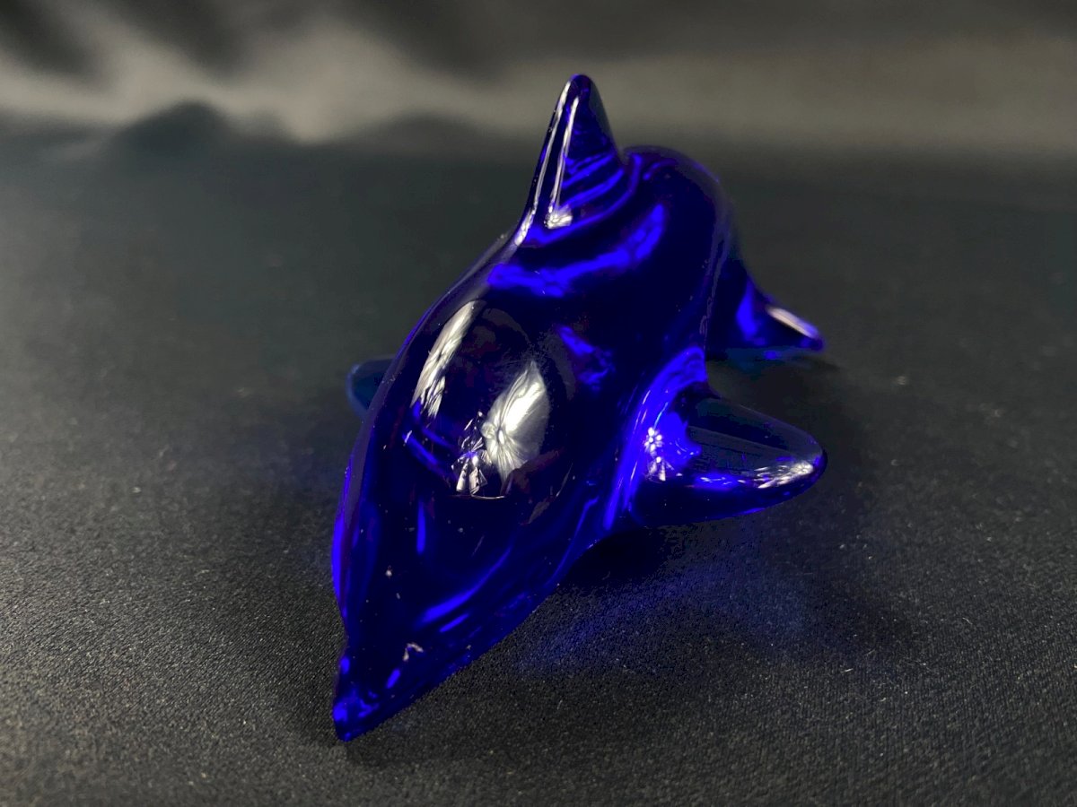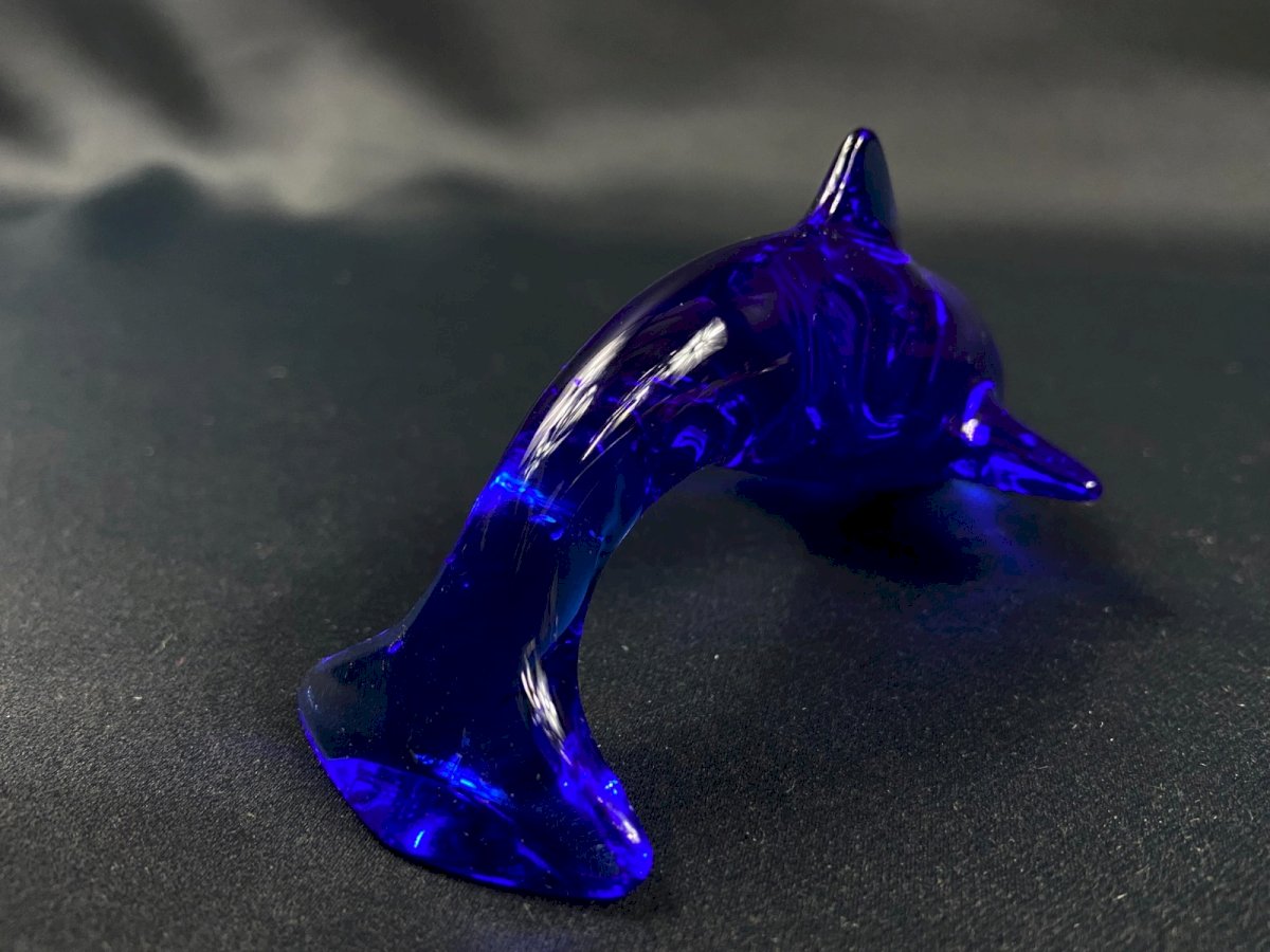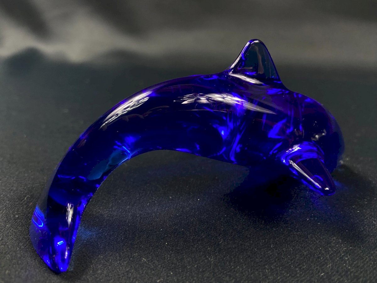 Sujet animalier en cristal teinté bleu signé DAUM au dauphin