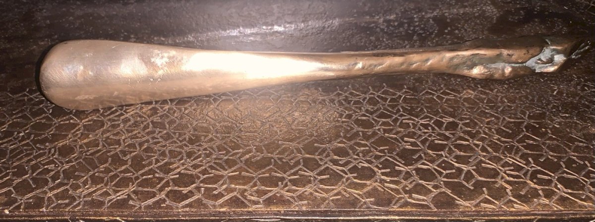 Ancien chausse pied en bronze En forme de patte de sanglier ou chevreuil Possibilité de l'accrocher Superbe Poids:545 grammes Longueur:34cm Lageur maxi:4,2cm Authenticité:Original Type:Objet de métier Période:Art Déco Origine:France Sous-type:Chasse Matière:Bronze