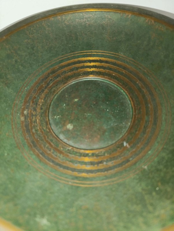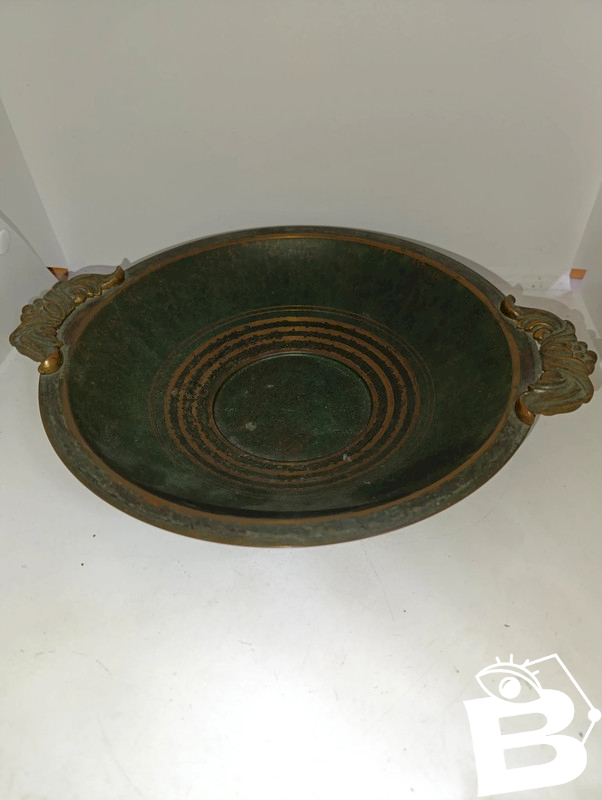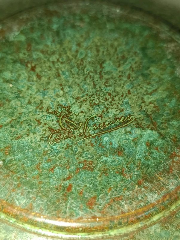 superbe coupe signée Carl Sorensen en bronze datant des années 1930-1940 en bon etat modele peu courant de cet artiste reconnu juste un peu d'usures de frottements dans le fond de la coupe diametre hors poignee 27cm et hauteur 6.5cm...