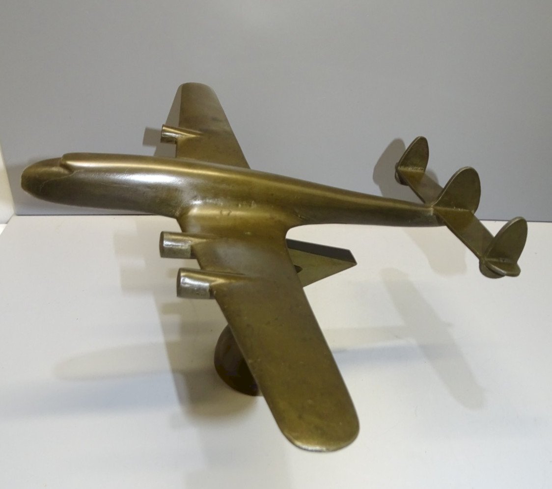 Superbe maquette d'  avion en bronze - avion Lancaster USA -  avec son support - avec tâches anciennes  (photos)  - Jolie patine - Jus de trouvailles, sortie de grenier - Réf. 1V250707/26 Hauteur 19 cm - Longueur 32 cm - largeur 43,3 cm -  Poids 3,7  kg     Pour me contacter mon adresse mail : EXPEDITION POSSIBLE EN MONDIAL RELAY ou COLISSIMO sur demande TRES BON EMBALLAGE GARANTI     MERCI de BIEN REGARDER TOUTES les PHOTOS car ELLES FONT PARTIE INTEGRANTE de la DESCRIPTION et PERMETTENT de VOIR l'OBJET AU MIEUX  avec SES PETITS DEFAUTS EVENTUELS - État:Occasion: Objet ayant été utilisé. Consulter la description du vendeur pour avoir plus de détails ...Occasion: Objet ayant été utilisé. les éventuelles imperfections. Type:Fabrication artisanale Type d'appareil:LANCASTER USA
