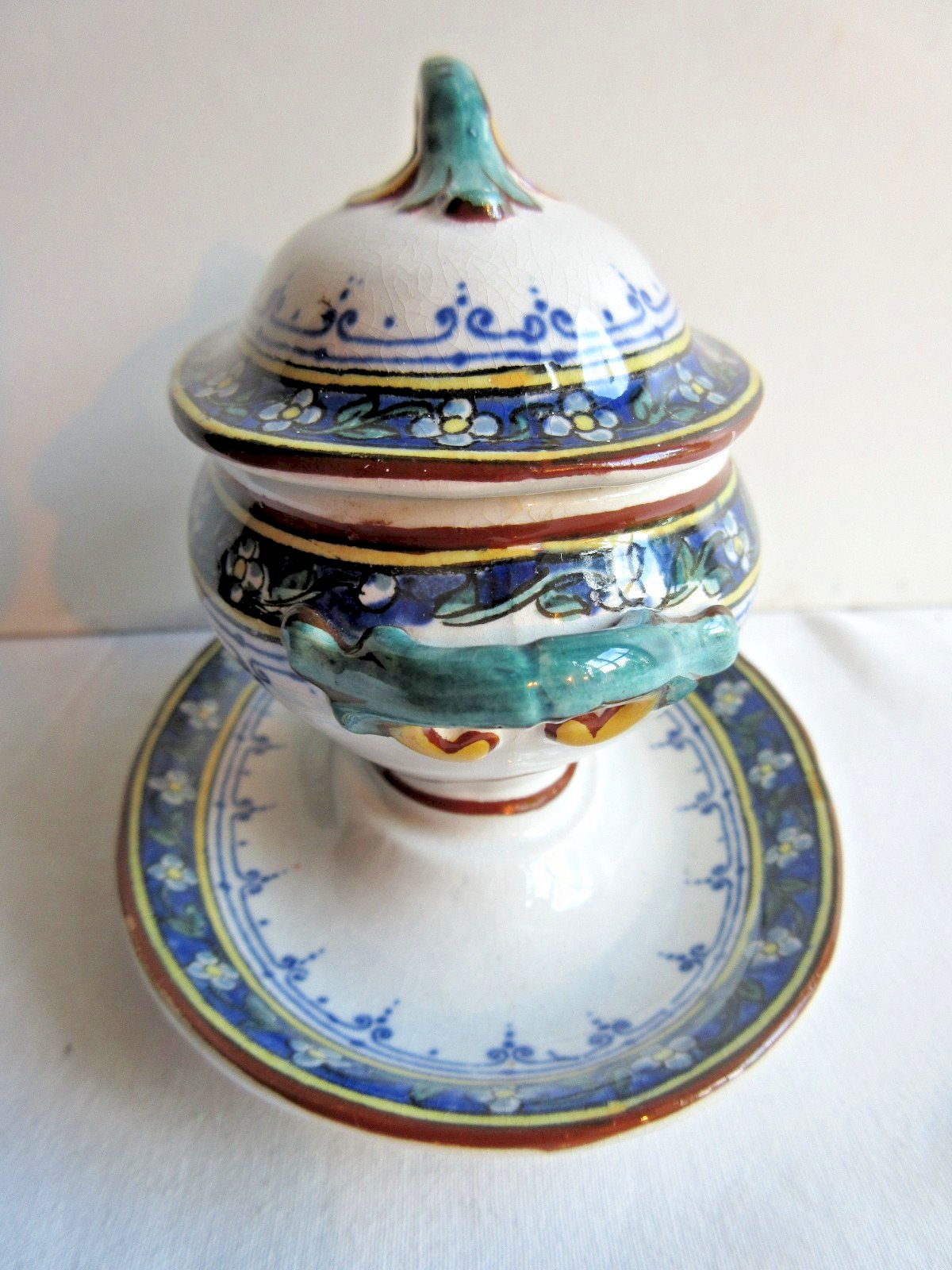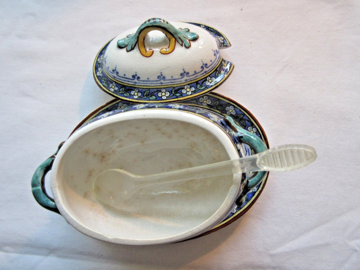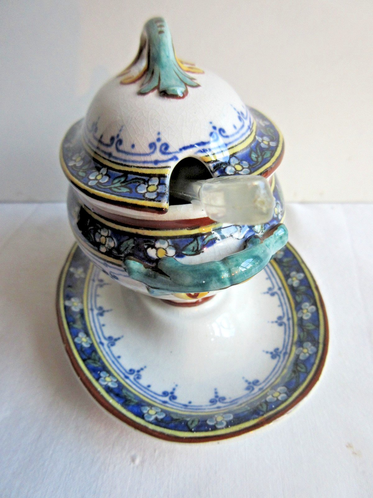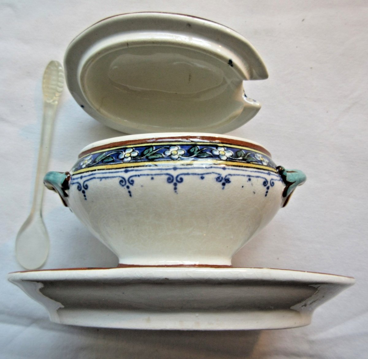 SUPERBE Moutardier en céramique Sarreguemines modèle Myosotis