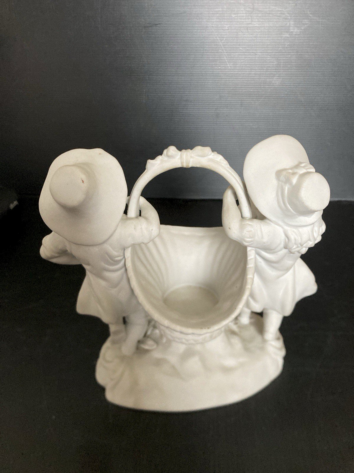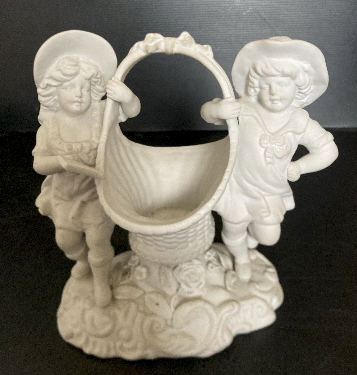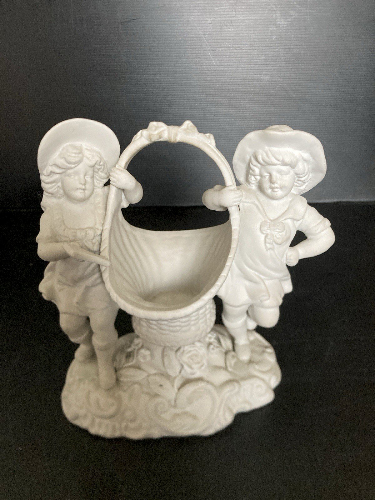 superbe panier vide poche entoure d'enfants en biscuit vintage decoration