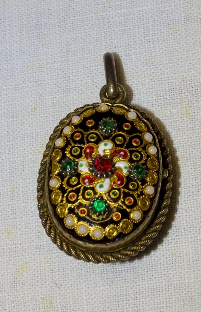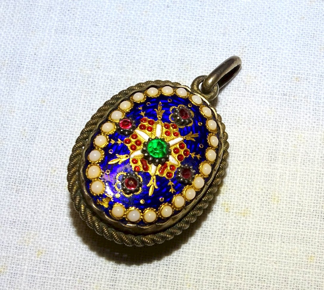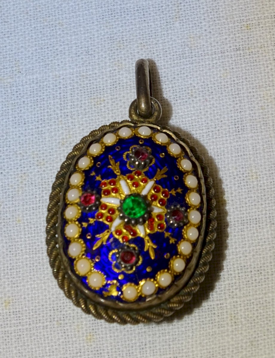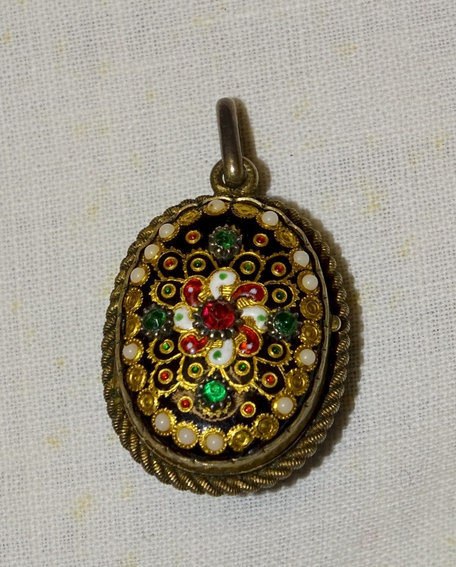 -SUPERBE PENDENTIF PORTE PHOTOS EMAUX BRESSANS XIXe Monture ARGENT VERMEIL
