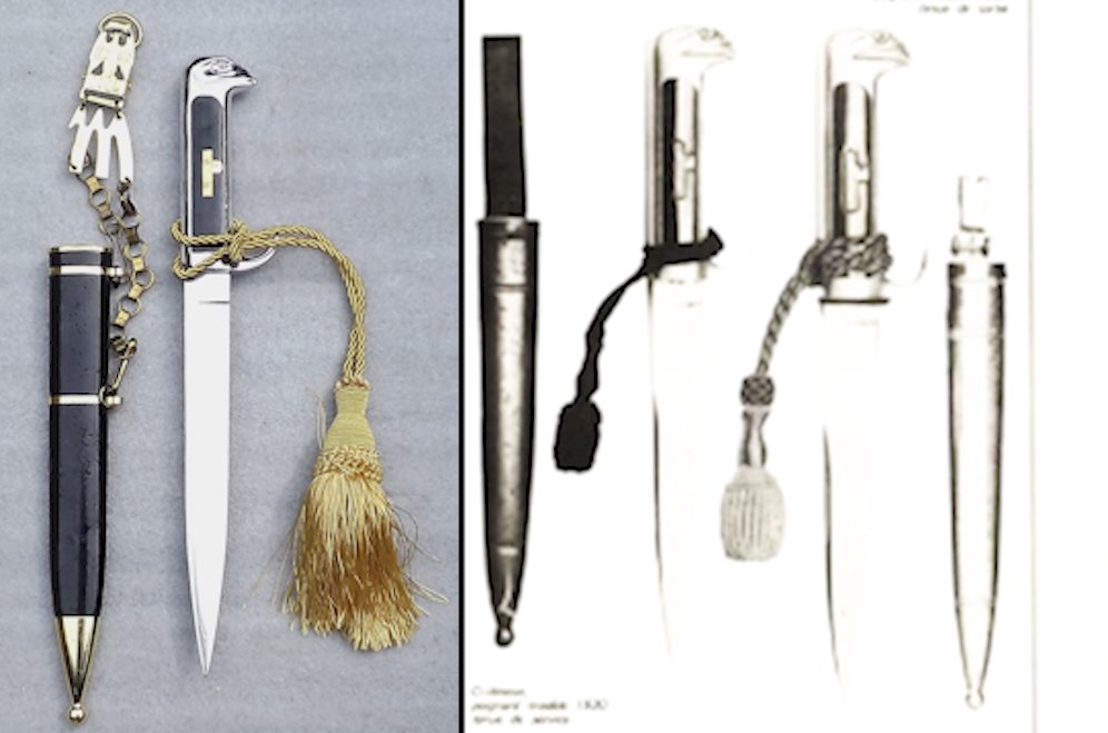 Ce magnifique poignard a été récupéré chez un collectionneur de militarie en Belgique. Pièce fabriquée en quantité limitée, identique à l'originale.
