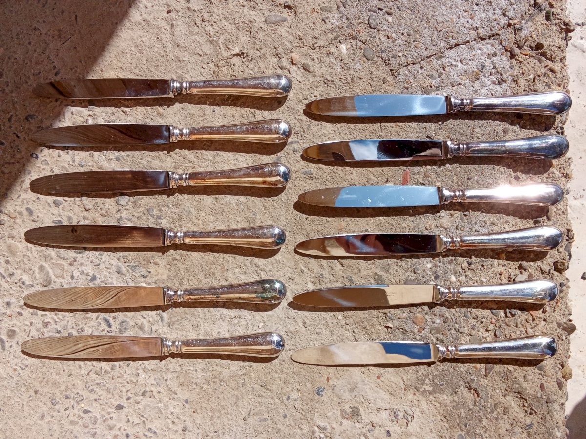 Superbe série de douze couteaux de table Christofle monogrammés.