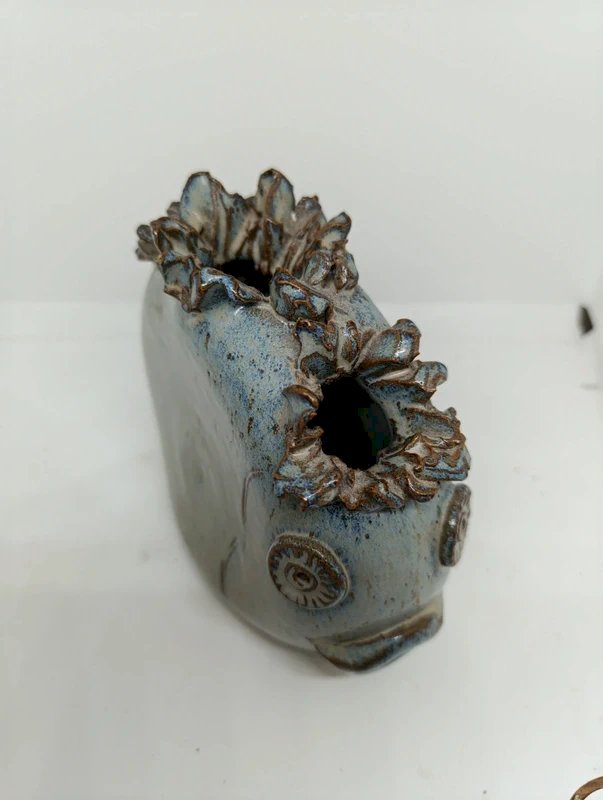 Superbe vase poisson par Alexandre kostanda en bon état Modèle a 3 ouvertures Superbe travail Non signe mais modèle connu pour cet artiste Dimension 18*8cm hauteur 16cm...