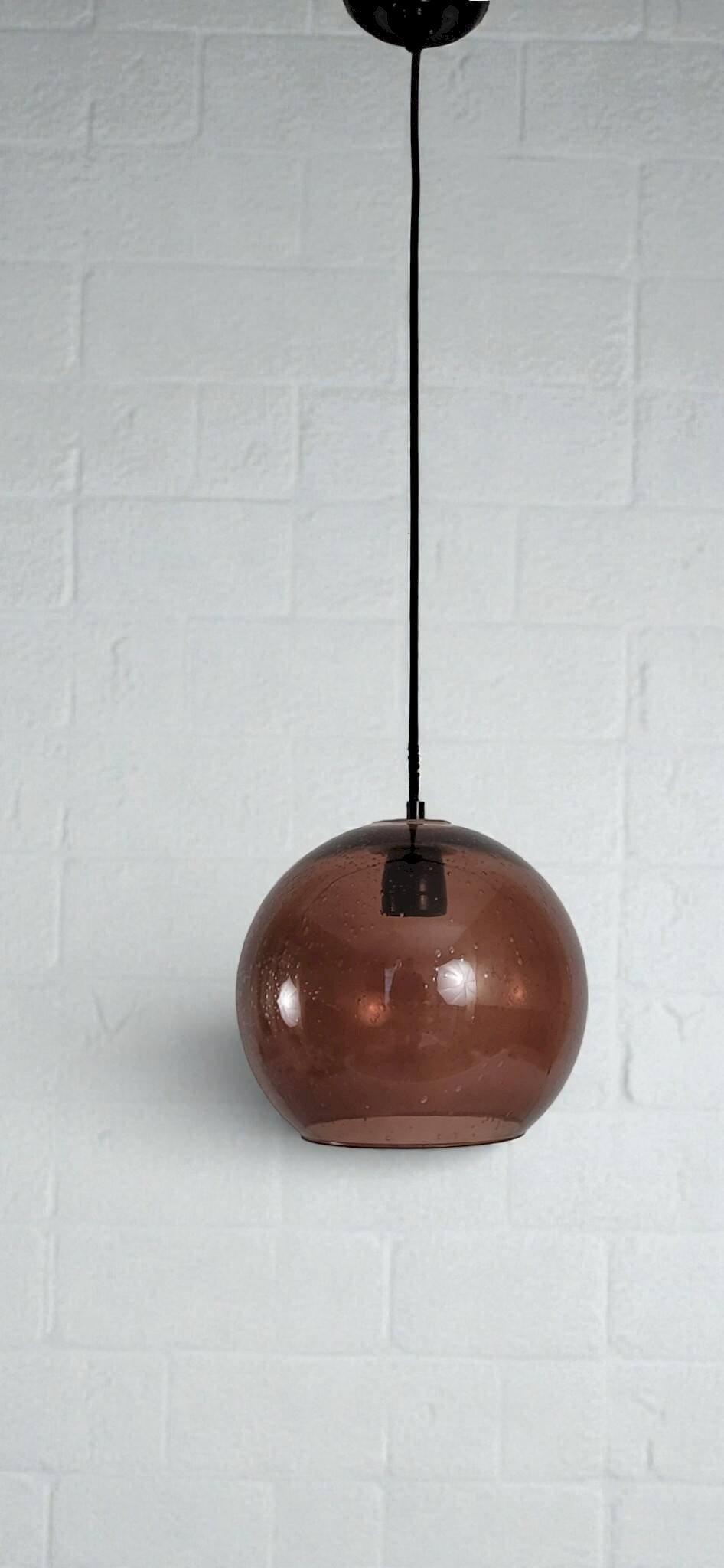 Grande Suspension Lustre Boule Vintage RAAK Verre Fumé Bullé/Design Années 1960