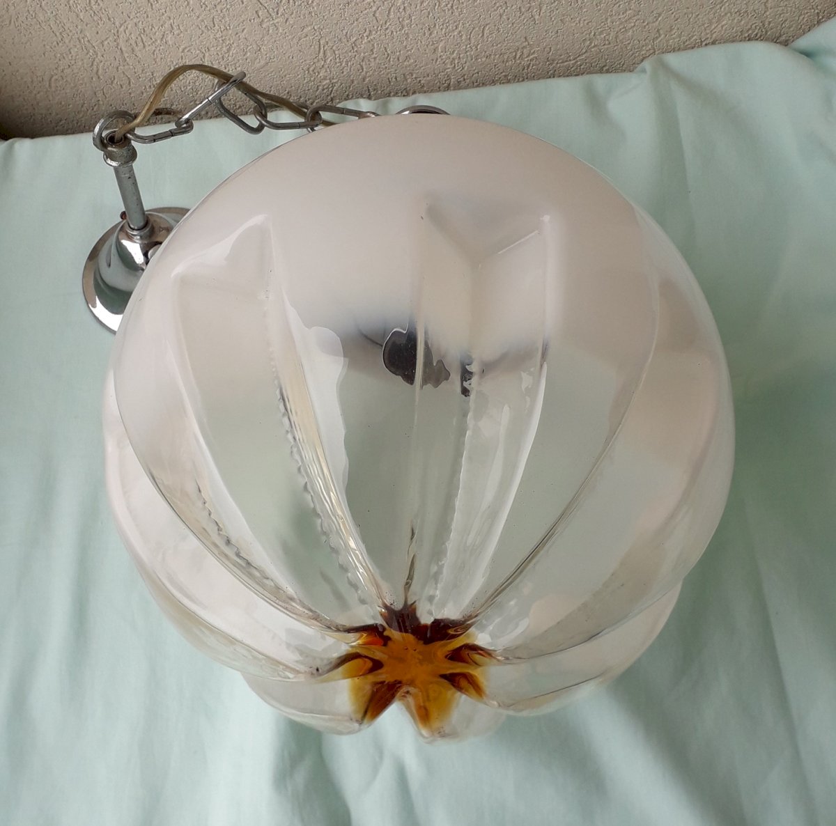 Suspension boule en verre de Murano produite par Mazzega, dans les années 70/80.