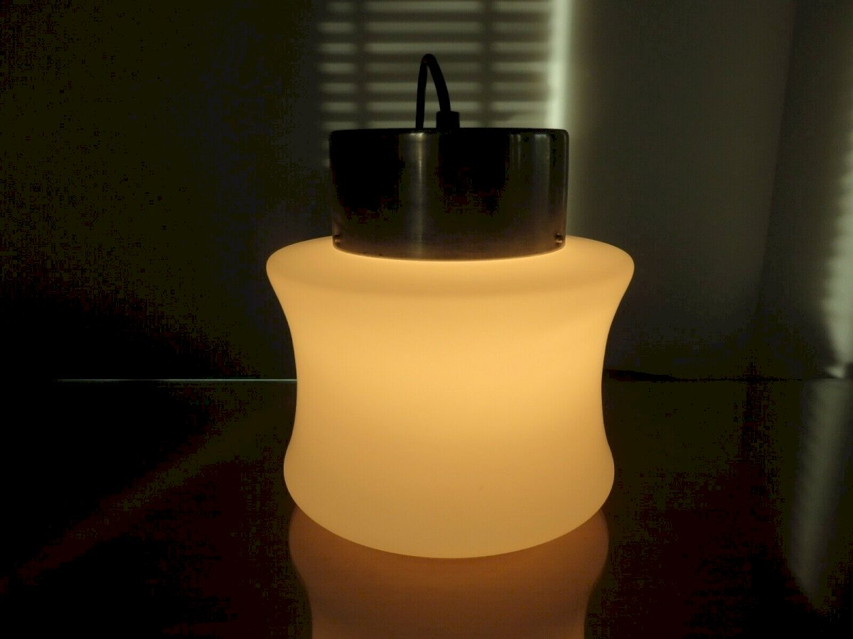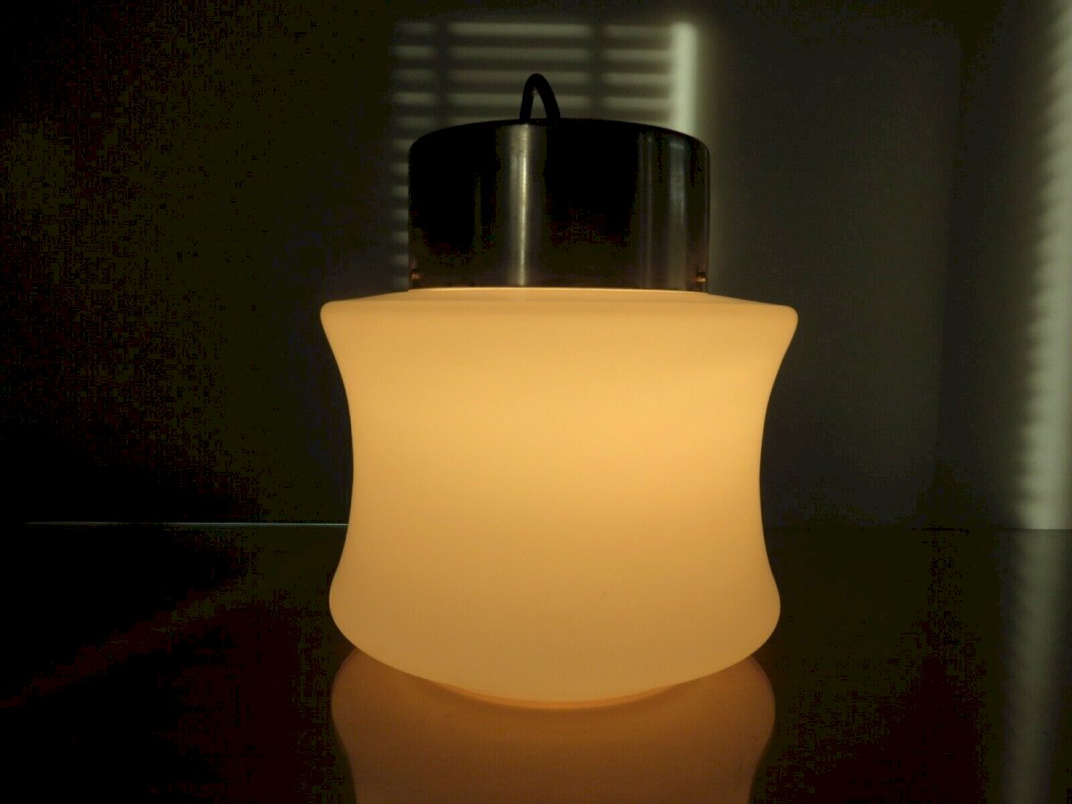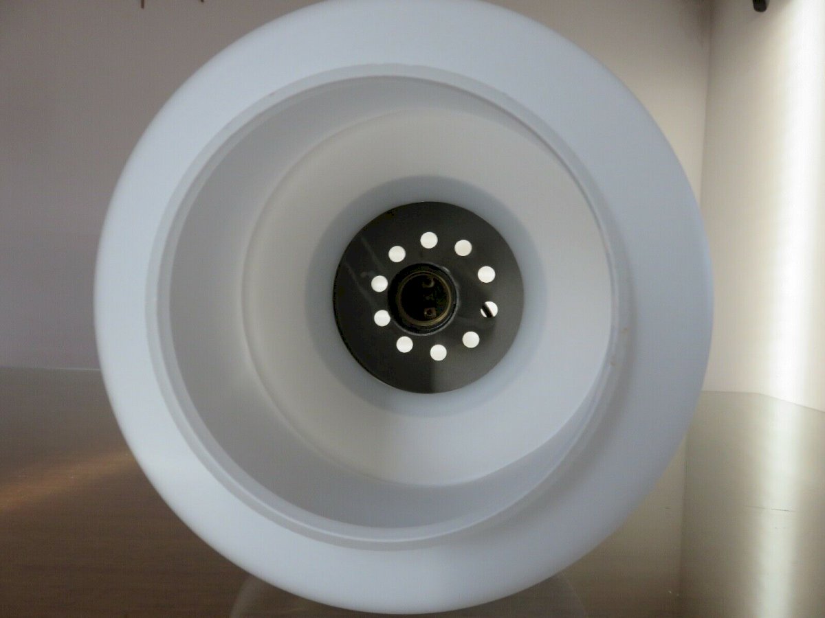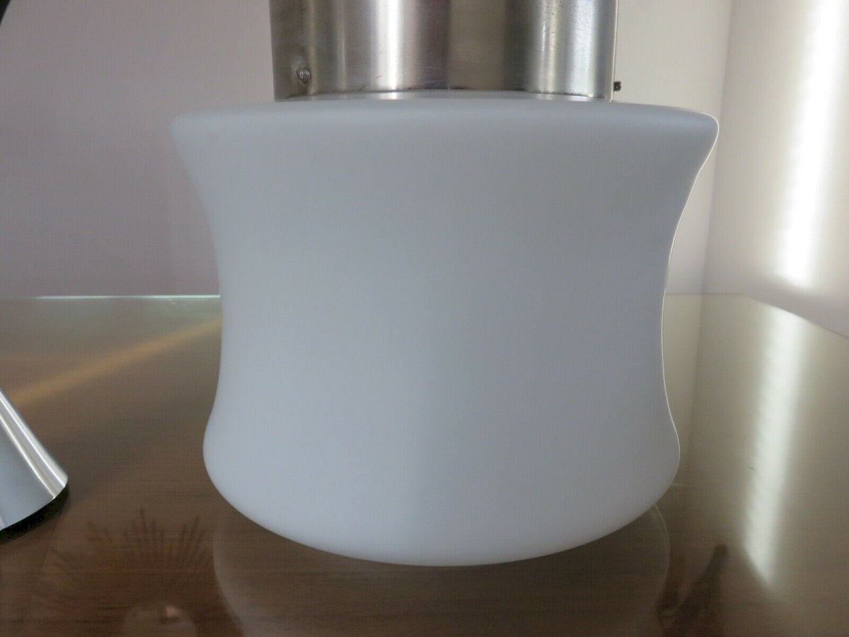 SUSPENSION SCANDINAVE EN OPALINE ET METAL CHROME ANNEES 60 70 HAUTEUR 22 CM HAUTEUR SOUS PLAFOND ( REGLABLE ) 60 CM DIAMETRE 19 CM LE DIFFUSEUR EN VERRE OPALIN BLANC EST EPAIS, DE TRES BONNE QUALITE ET EN BON ETATLES CHROMES COMPORTENT DES TRACES VISIBLES SUR PHOTOS MAIS ILS SONT EN ETAT TRES CORRECT DOUILLES A VIS GROS CULOT E27 LIVRE SANS AMPOULE PARFAIT ETAT DE FONCTIONNEMENT ENVOI EN EMBALLAGE TRES SOIGNE