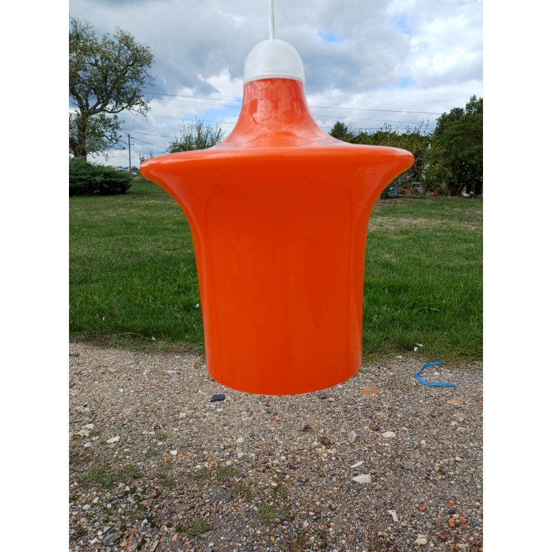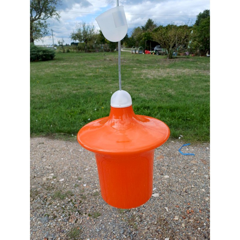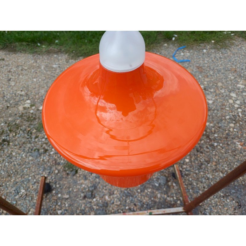suspension Vintage des Années 70 en Opaline Orange et Blanche , Haut : 31 cm , Diam 26 cm  , trés bon ètat