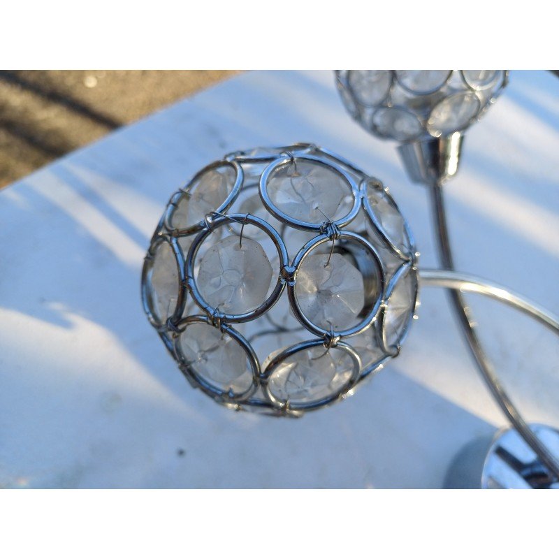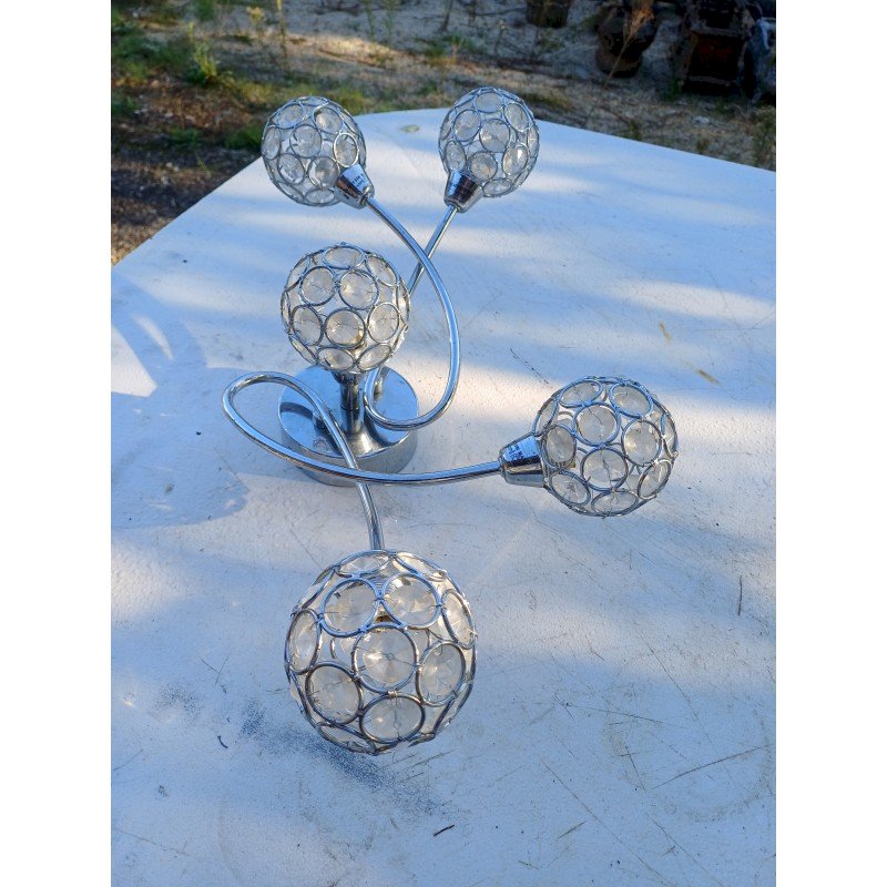 Suspension Vintage Métal Chromé , 5 Lumières , Haut : 17 cm , long et larg : 48 cm sur 27 cm , Diam Boules : 8 cm , Poids : 1,3 Kg , trés bon ètat ,