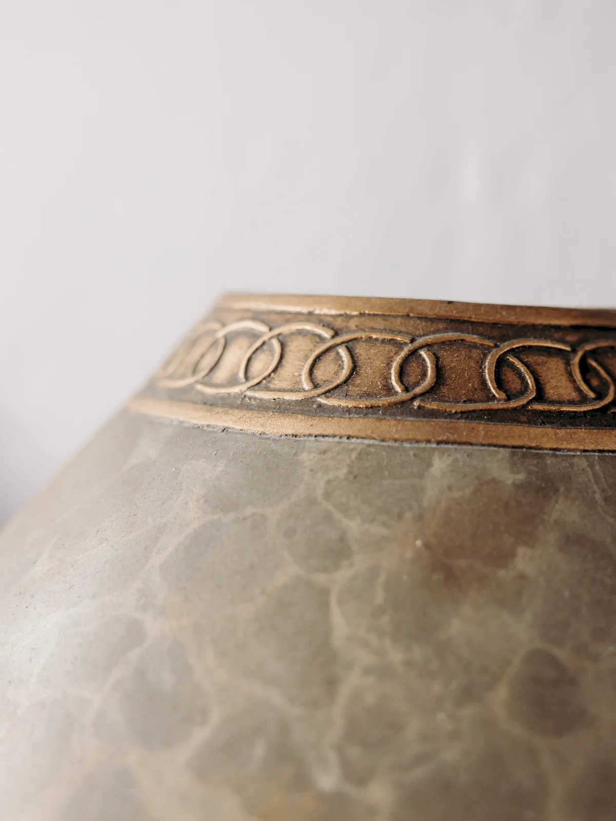 Apportez une touche lumineuse et raffinée avec cette paire de grandes lampes dorées, dont les pieds en résine évoquent la noblesse d'un métal précieux. Les abat-jours à l'effet marbré diffusent une lumière douce et nuancée, tandis que de délicates anses apportent une note architecturée à l'ensemble. Leur gabarit généreux affirme une présence chaleureuse dans un salon ou une entrée, créant une ambiance élégante et accueillante. Hauteur : 49 cm Diamètre : 73 cm État:Occasion: Objet ayant été utilisé. Objet présentant quelques marques d'usure superficielle, ...Occasion: Objet ayant été utilisé. Objet présentant quelques marques d'usure superficielle, entièrement opérationnel et fonctionnant correctement. Il peut s'agir d'un modèle de démonstration ou d'un objet retourné en magasin après une courte période d'utilisation. les éventuelles imperfections. Marque:Debongout Type:Produit chiné Vintage:Oui Style:Campagne