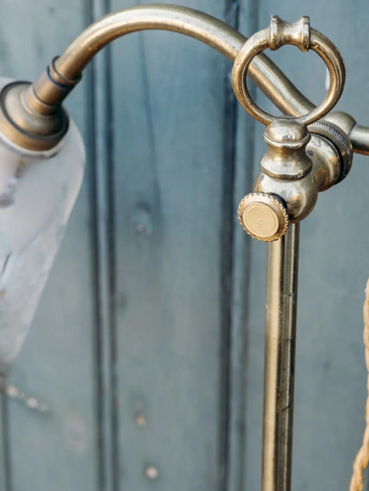Apportez une touche d'élégance à votre intérieur avec cette fine lampe dorée, dotée d'un globe en verre délicat. Son design raffiné et son assemblage soigné en font une pièce maîtresse parfaite pour illuminer vos espaces de vie. Avec ses nuances dorées et la transparence du verre, elle crée une ambiance chaleureuse tout en ajoutant une note de sophistication. Idéale pour les salons, chambres ou bureaux, cette lampe saura s’adapter à tous les styles de décoration. Exclusivité web, la rencontre se fera chez vous ! Hauteur : 55 cm Diamètre de la lampe : 14 cm État:Occasion: Objet ayant été utilisé. Objet présentant quelques marques d'usure superficielle, ...Occasion: Objet ayant été utilisé. Objet présentant quelques marques d'usure superficielle, entièrement opérationnel et fonctionnant correctement. Il peut s'agir d'un modèle de démonstration ou d'un objet retourné en magasin après une courte période d'utilisation. les éventuelles imperfections. Marque:Debongout Type:Produit chiné Vintage:Oui Style:Campagne