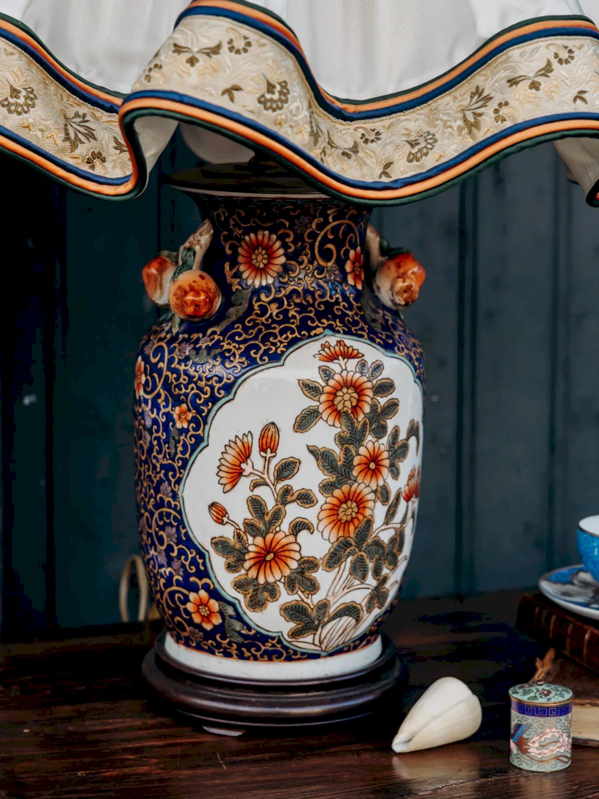 Sublimez votre intérieur avec cette grande lampe à poser en céramique émaillée, au socle aux finitions soignées. Son abat-jour juponné réglable en hauteur et de belle envergure, rehaussé de détails dorés, diffuse une lumière chaleureuse et enveloppante en diffusant plus ou moins l'éclairage selon les envies. Idéale pour un coin lecture ou une table d'appoint. Conçue pour accueillir deux ampoules E27, elle allie présence et délicatesse, apportant une touche d'élégance discrète et contemporaine à la pièce. Hauteur : 75 cm Diamètre de l'abat-jour : 50 cm État:Occasion: Objet ayant été utilisé. Objet présentant quelques marques d'usure superficielle, ...Occasion: Objet ayant été utilisé. Objet présentant quelques marques d'usure superficielle, entièrement opérationnel et fonctionnant correctement. Il peut s'agir d'un modèle de démonstration ou d'un objet retourné en magasin après une courte période d'utilisation. les éventuelles imperfections. Marque:Debongout Type:Produit chiné Vintage:Oui Style:Campagne