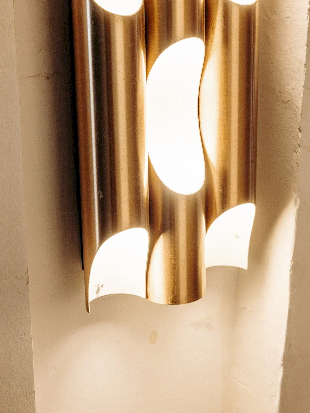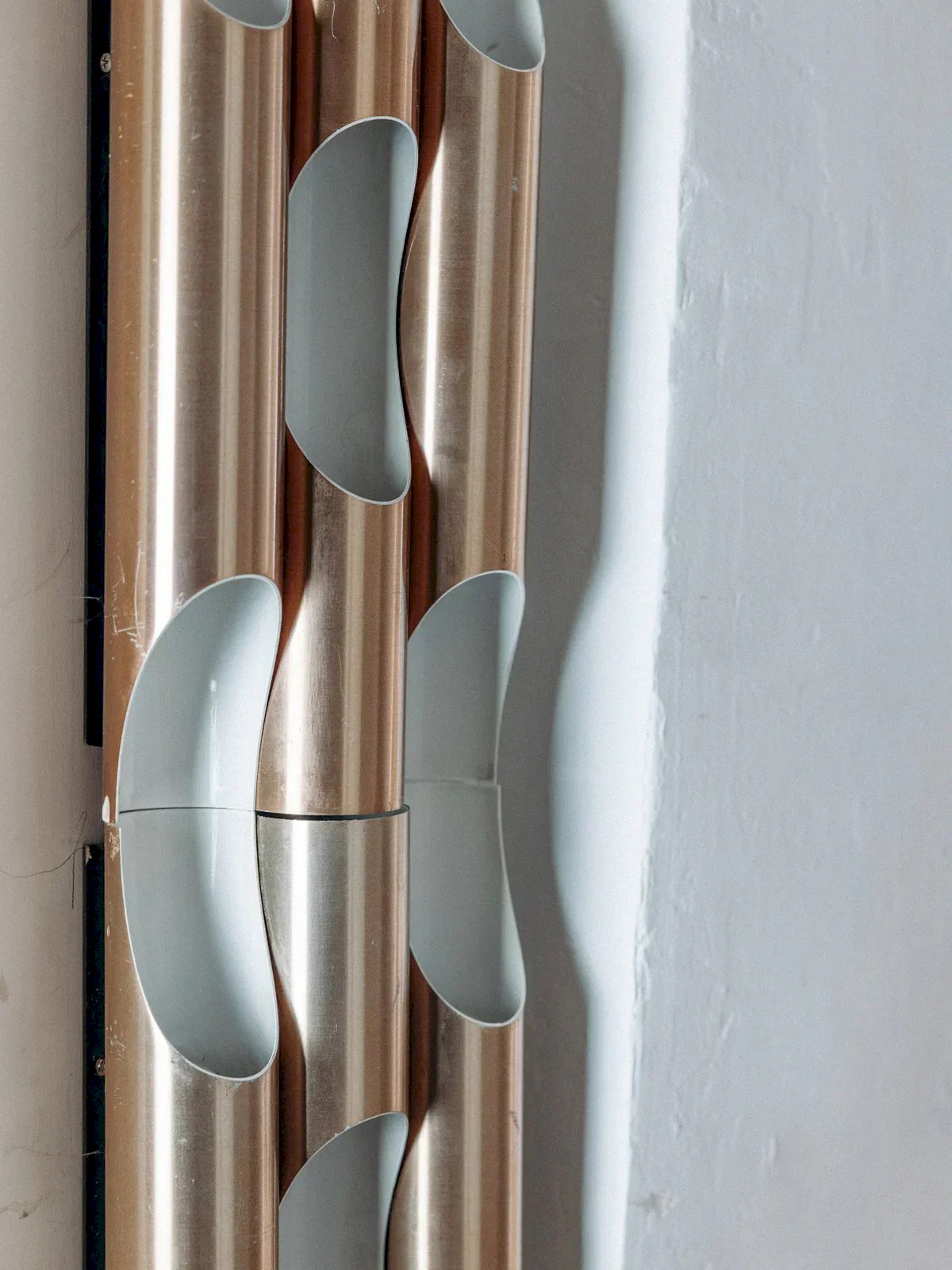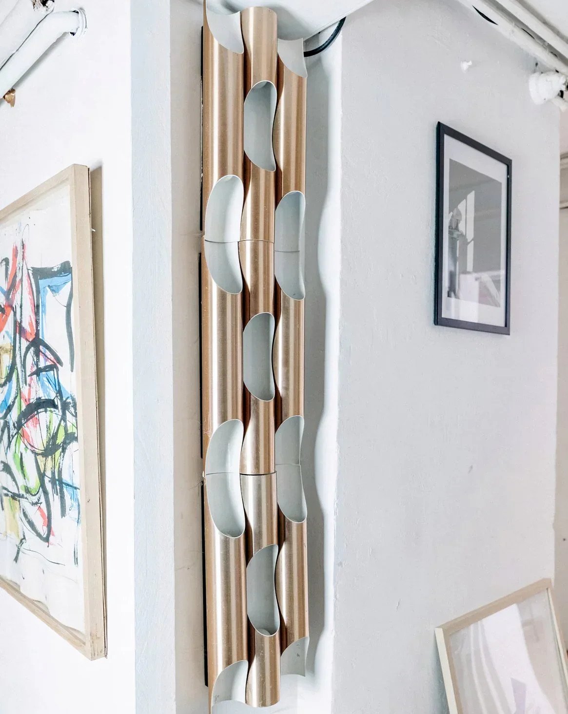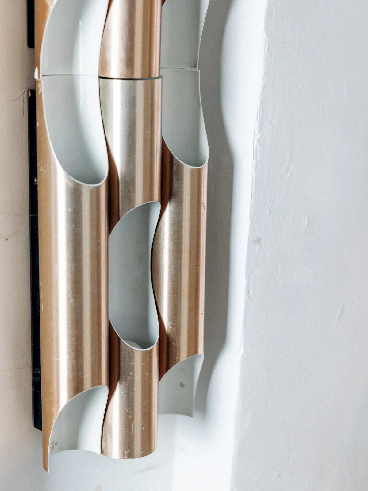 Alerte pièce rare ! Découvrez ce set de 9 appliques en métal rose cuivré et blanc, modèle Fuga signé Maija Lisa Komulainen pour Raak, datant des années 1960. Une création iconique au design raffiné, idéale pour illuminer votre intérieur avec style et élégance. Modulables et accompagnées de 3 supports d'origine en métal pour les assembler, elles offrent une grande flexibilité à l'installation. Vendues en lot de 9 appliques. Dimensions pour une applique : Longueur : 7 cm Hauteur : 40,5 cm État:Occasion: Objet ayant été utilisé. Objet présentant quelques marques d'usure superficielle, ...Occasion: Objet ayant été utilisé. Objet présentant quelques marques d'usure superficielle, entièrement opérationnel et fonctionnant correctement. Il peut s'agir d'un modèle de démonstration ou d'un objet retourné en magasin après une courte période d'utilisation. les éventuelles imperfections. Marque:Debongout Type:Produit chiné Style:Campagne Matériau:Métal Vintage:Oui