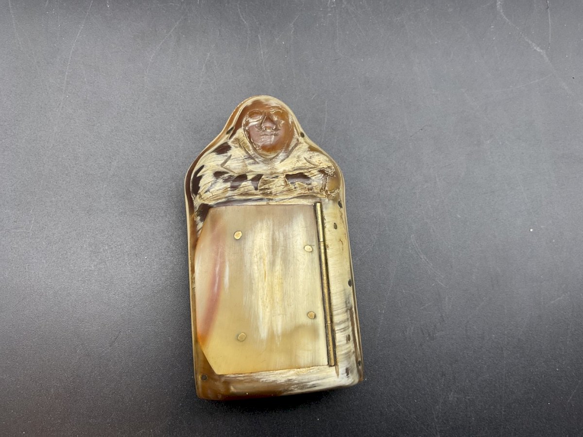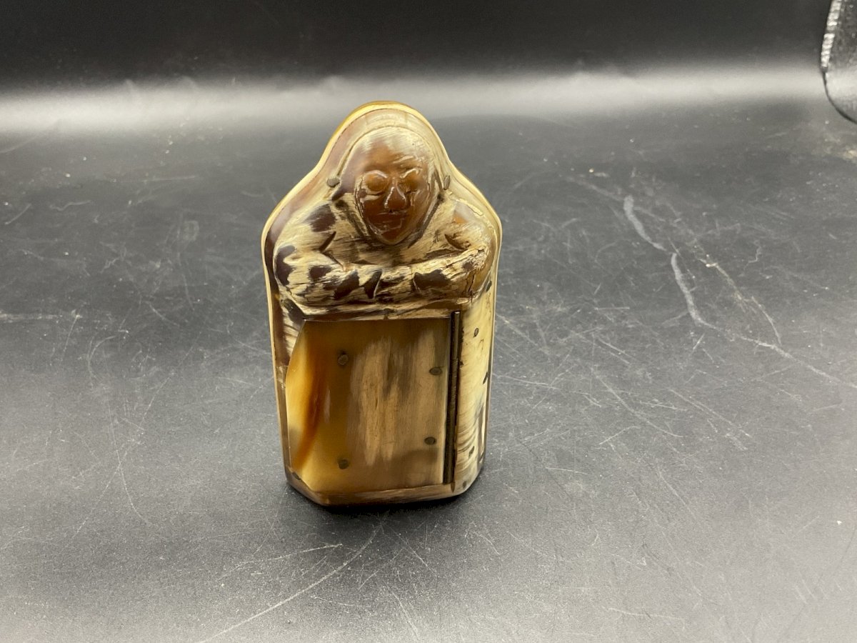 Tabatière boîte érotique Fanny personnage XIXème Hauteur : 9 cm Largeur : 5,2 cm Authenticité:Original Type:Objet de vitrine, Décoratif Etat:Occasion Origine:France Sous-type:Tabatière Matière:Bois