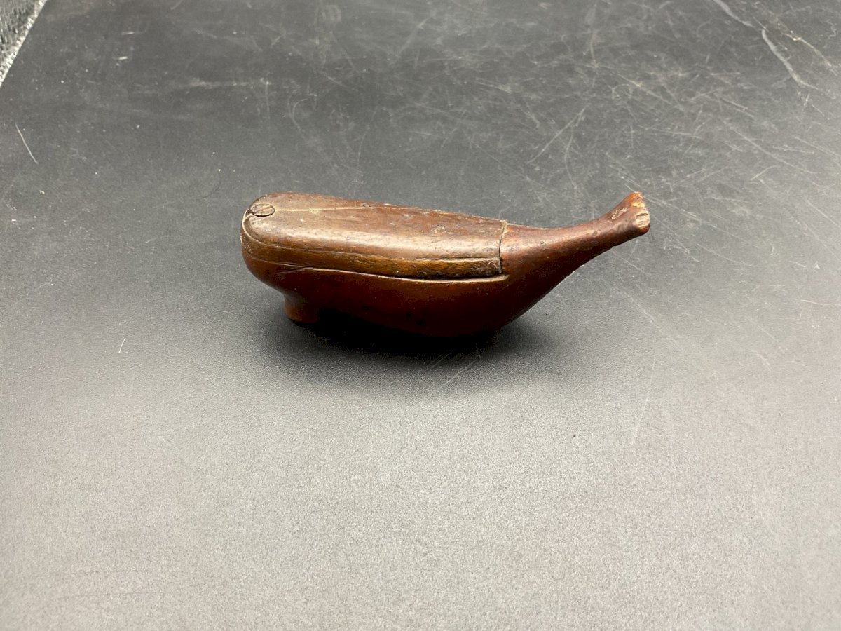 tabatière chaussure sabot bois sculpté Art Populaire snuffbox XIXème Pyrogène  Longueur : 8 cm Largeur : 2,3 cm Hauteur : 3,2 cm Authenticité:Original Type:Objet de vitrine, Décoratif Etat:Occasion Origine:France Sous-type:Tabatière Matière:Bois
