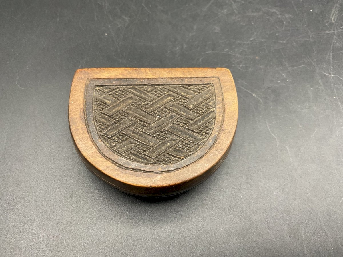 Tabatière Sculpture Bois art africain NGOGO LUCETE Dimension : 6 x 4,7 cm Hauteur : 2,2 cm Authenticité:Original Origine:France Sous-type:Pichet Matière:Bois