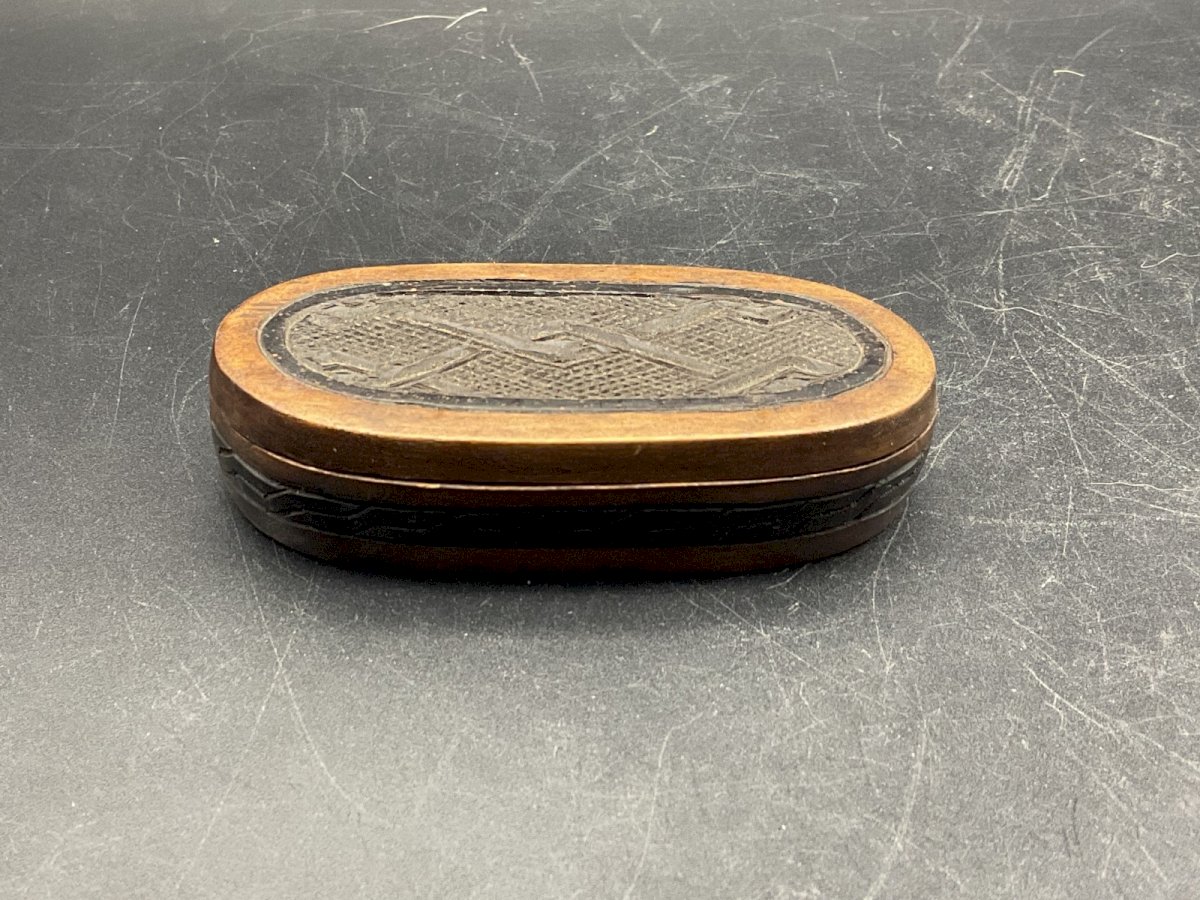 Tabatière Sculpture Bois art africain NGOGO LUCETE Dimension : 8,2 x 4 cm Hauteur : 1,8 cm Authenticité:Original Origine:France Sous-type:Pichet Matière:Bois