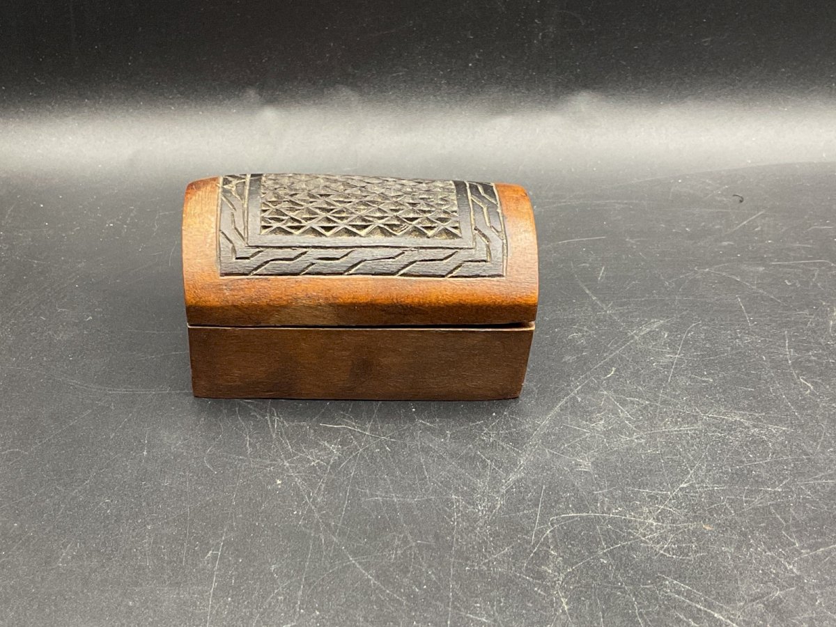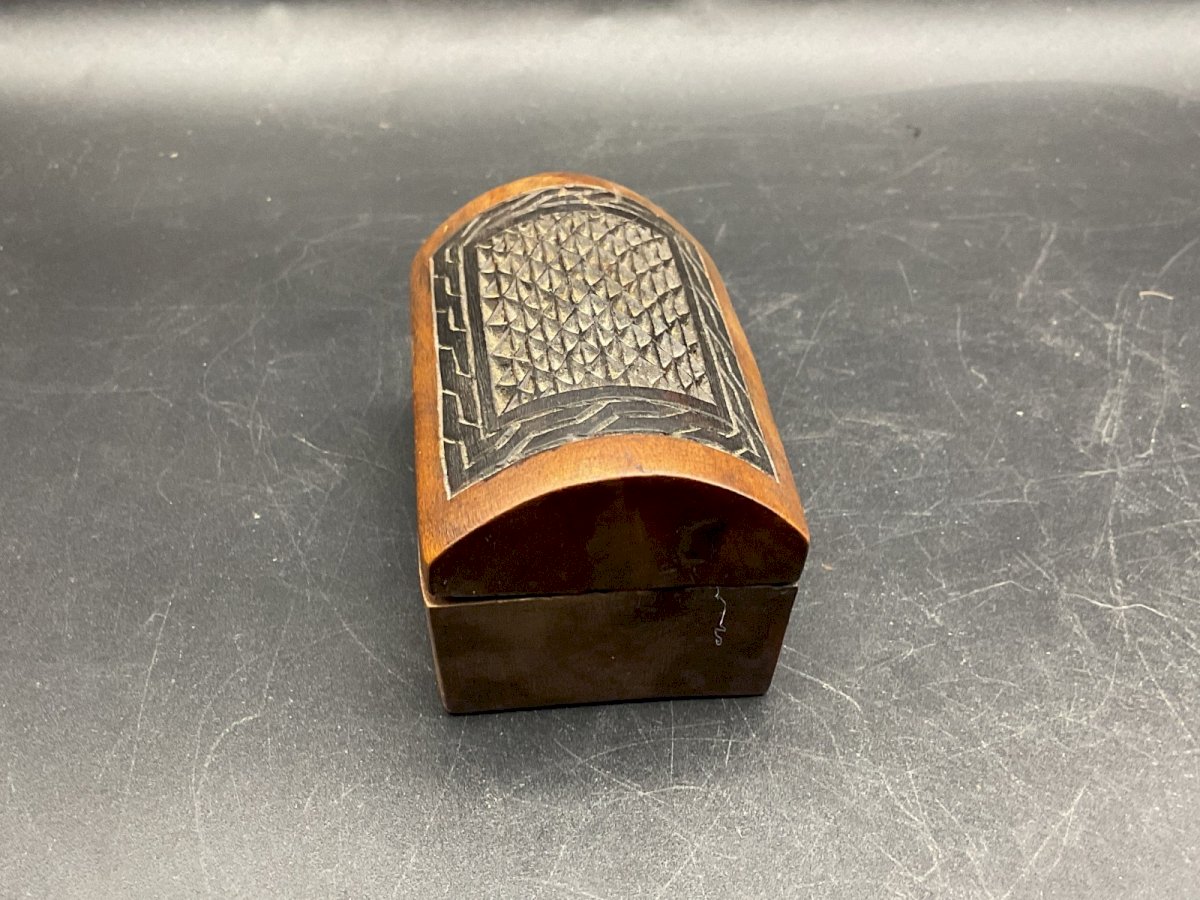 Tabatière Sculpture Bois art africain NGOGO LUCETE Dimension : 6,5 x 4,4 cm Hauteur : 3,4 cm Authenticité:Original Origine:France Sous-type:Pichet Matière:Bois
