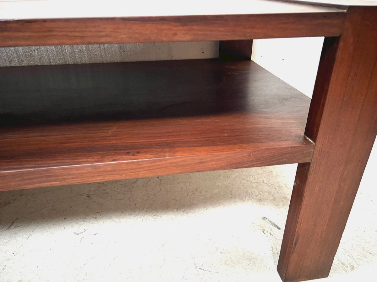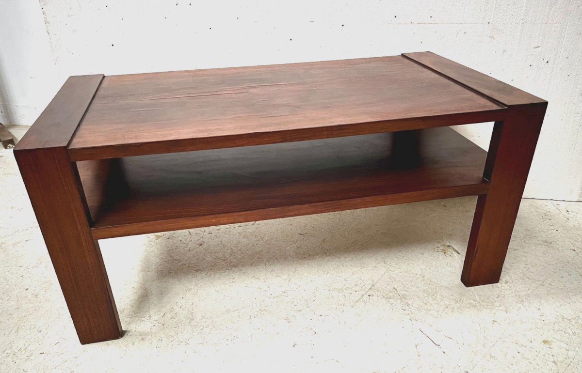 Table basse a deux plateaux en acajou et placage Table d'époque Art Delco a piétement rectangulaire Bon état Dimension H 52 x L 115 x 60 cm XX siècle Période:Art Déco Pays d'origine:France Hauteur:52 Matière:Acajou Longueur:115 Largeur:60 Forme:Rectangulaire