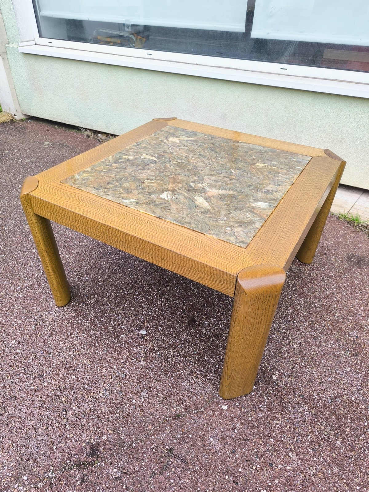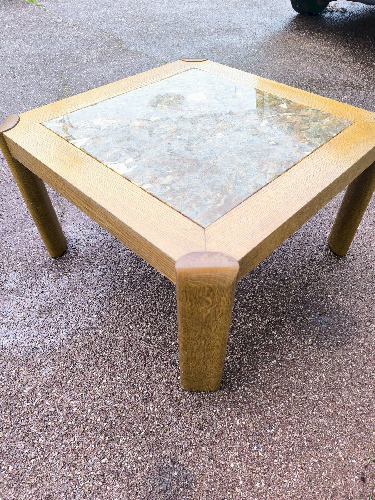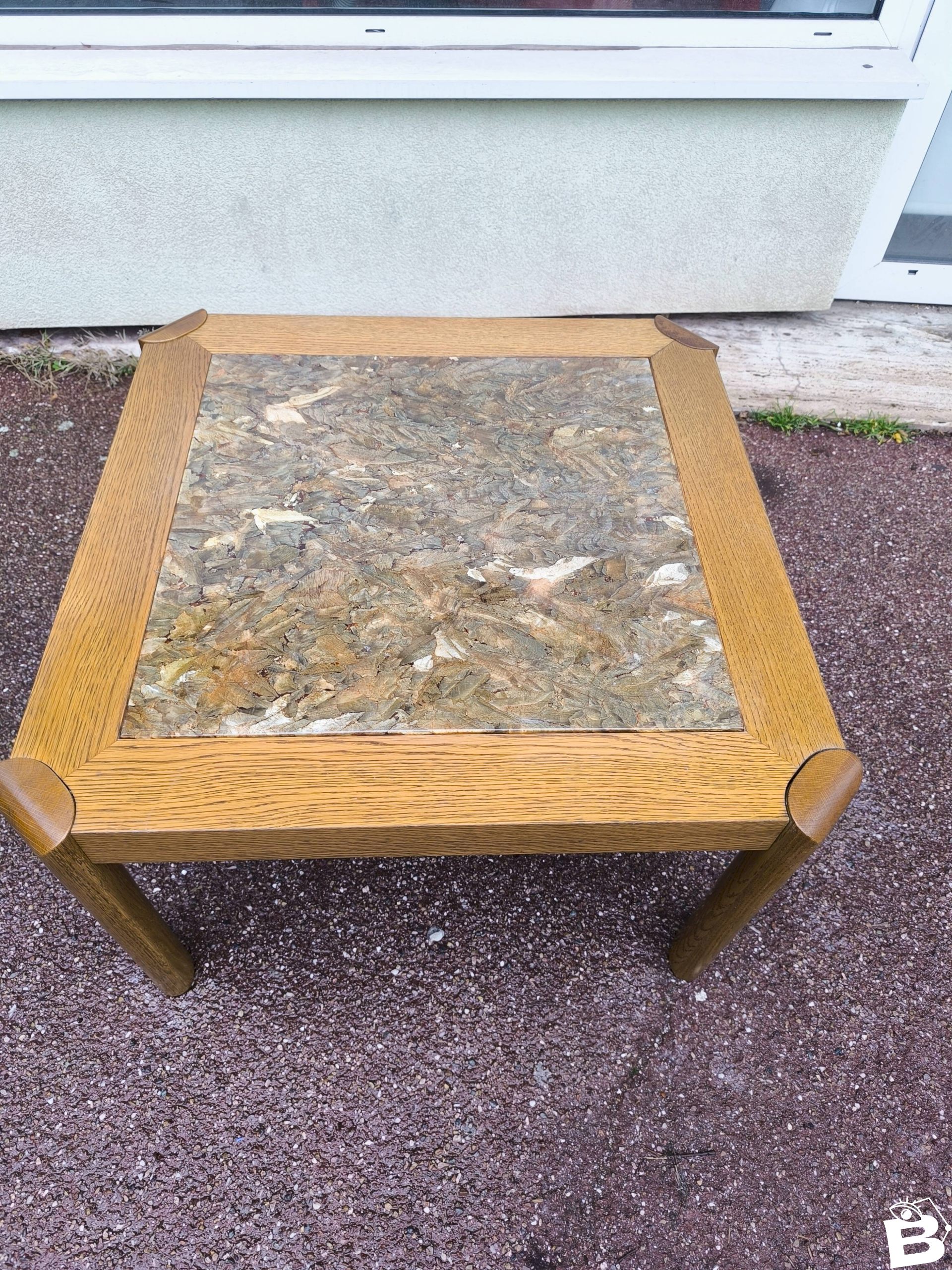 Table basse bois et marbre effet brillant 1970
