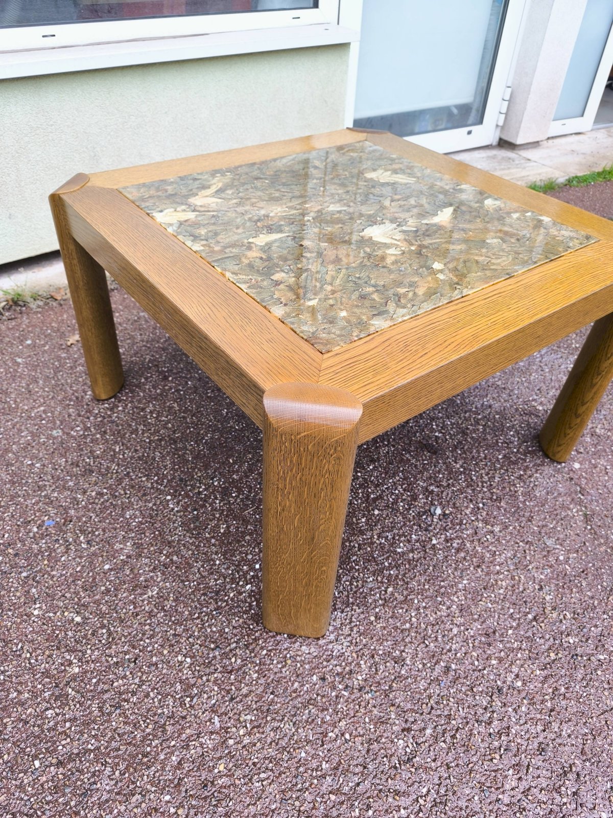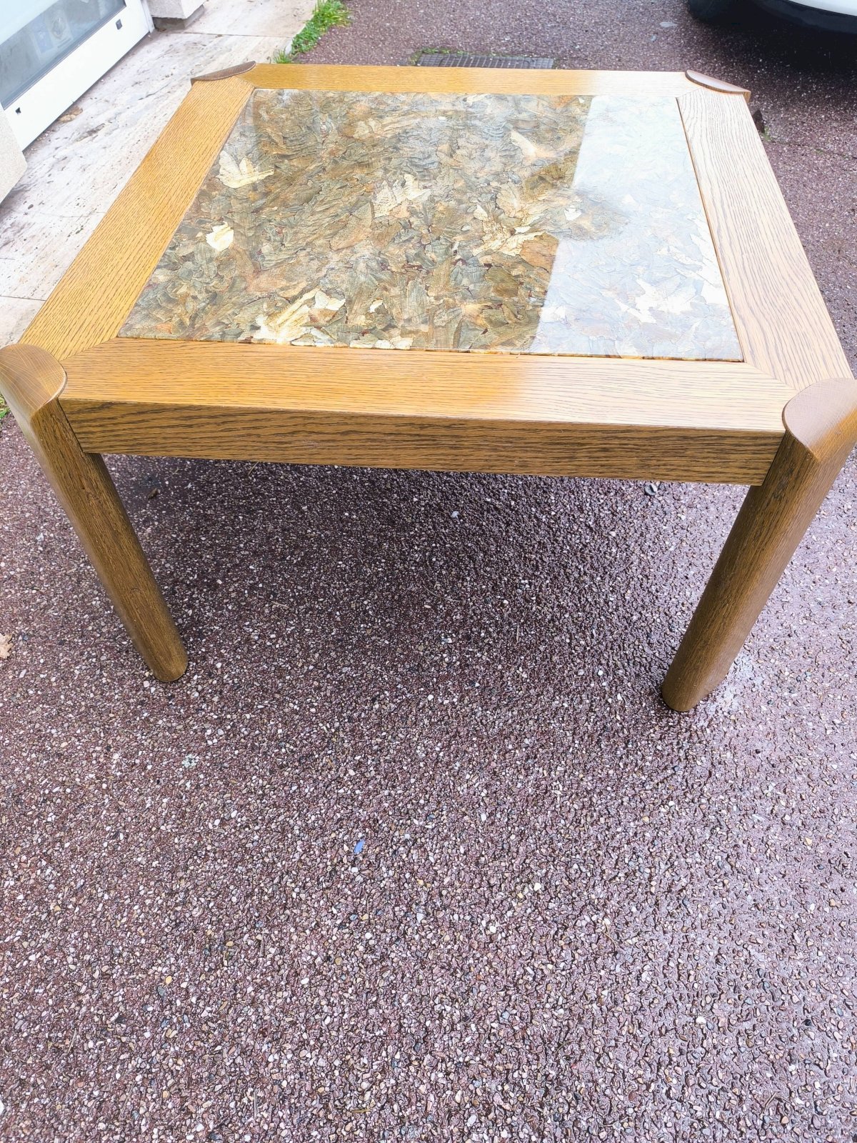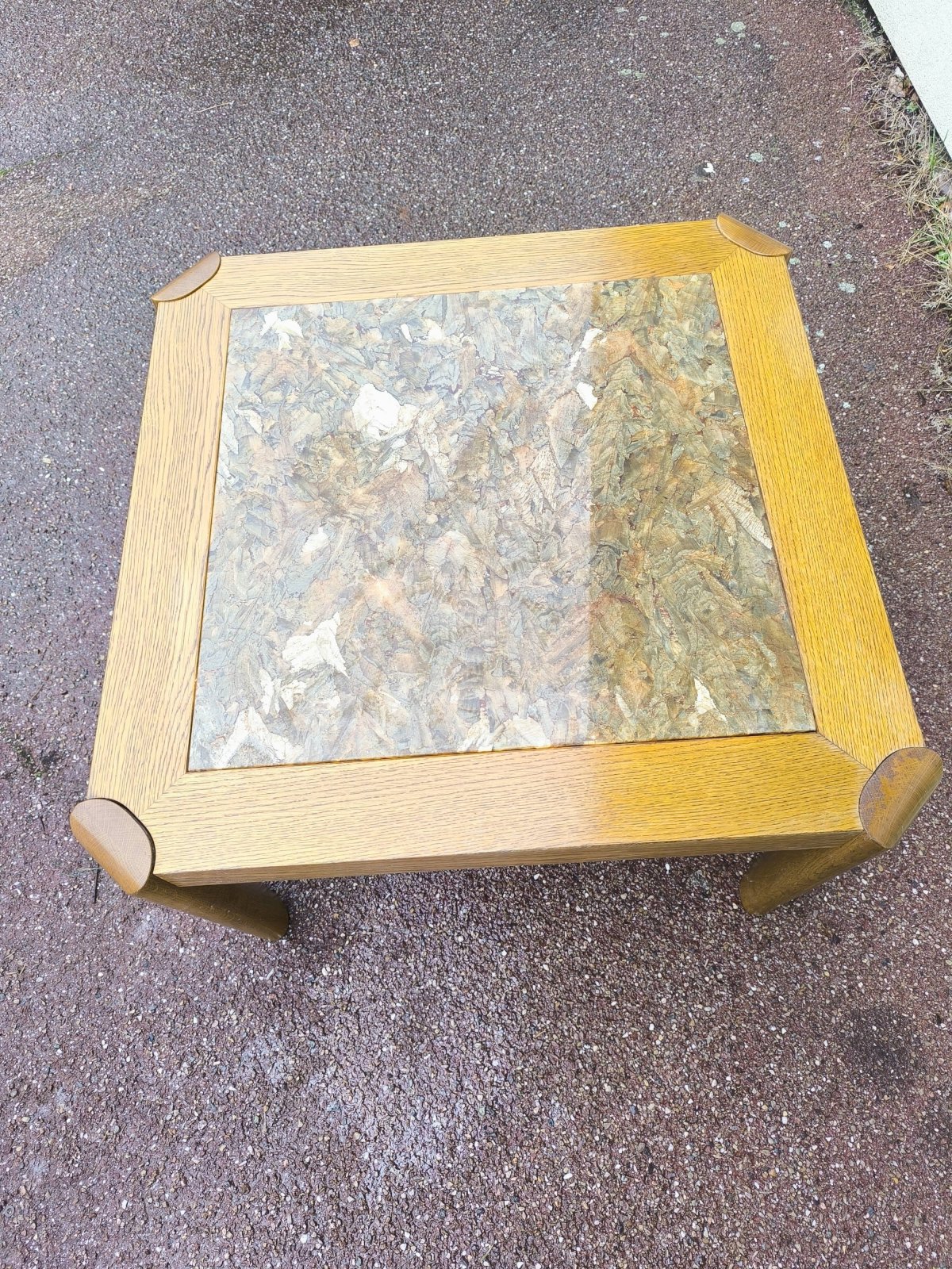 Table basse bois et marbre effet brillant 1970