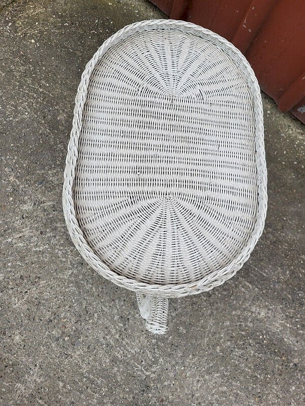 Table basse/de chevet blanc cassé en rotin vintage (repeinte blanc sur demande)