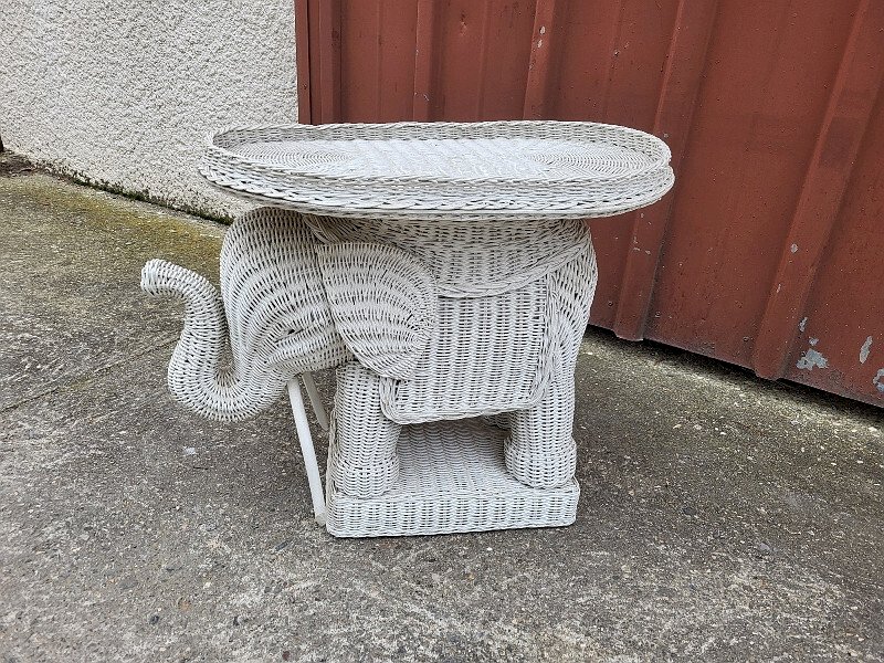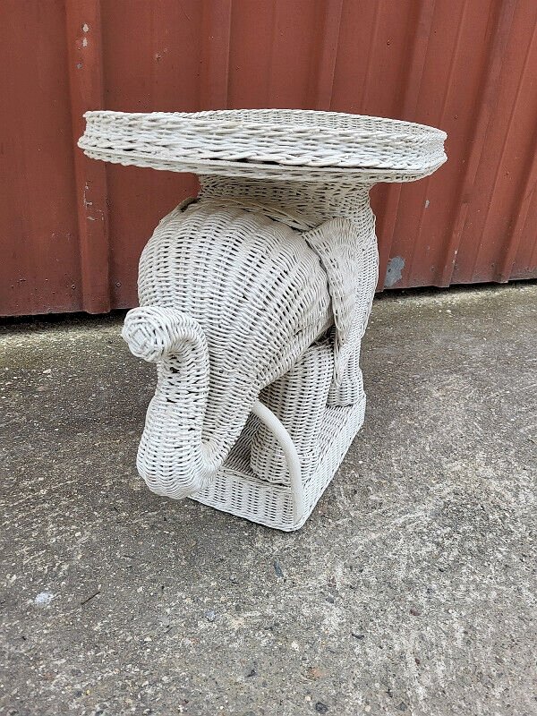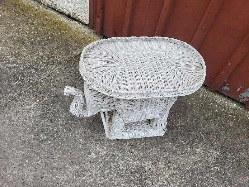 superbe table basse éléphant en rotin blanc elle est en très bon état elle est juste à nettoyer légèrement c'est un très joli modèle elle mesure 68 cm de long sur 51 cm de large et 53 cm de haut Je reste à votre disposition pour toutes vos questions ou par email ou par téléphone : . pour d'autres photos plus grandes envoyez moi votre email. pour une livraison entre le sud et paris demandez  le prix a JM TRANSPORTS au 06.12.25.48.48. pour une autre destination contactez moi. .. Type:Table Sous-type:Table basse