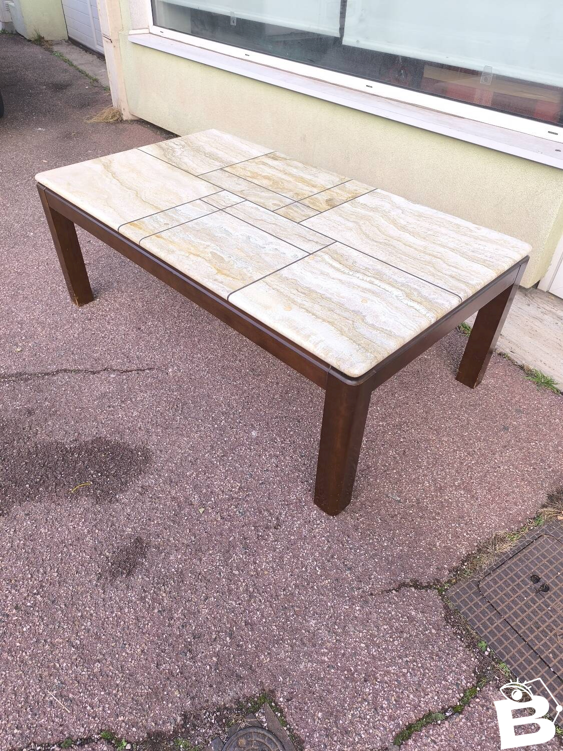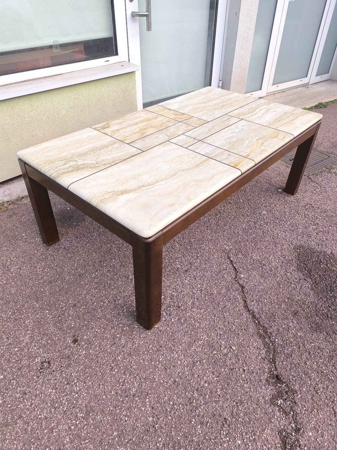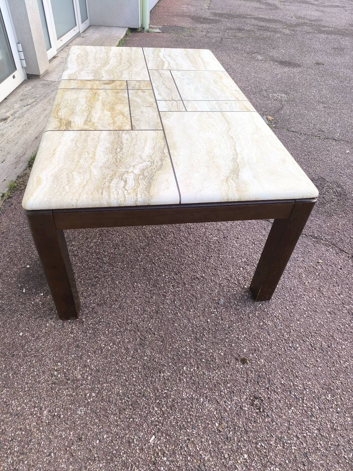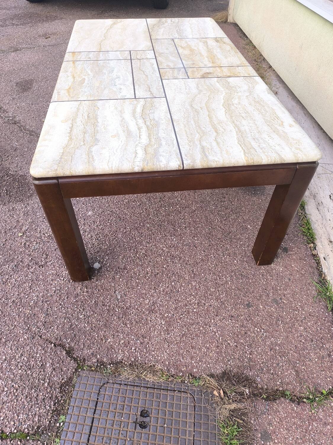 Table basse en bois et travertin 1970 1980