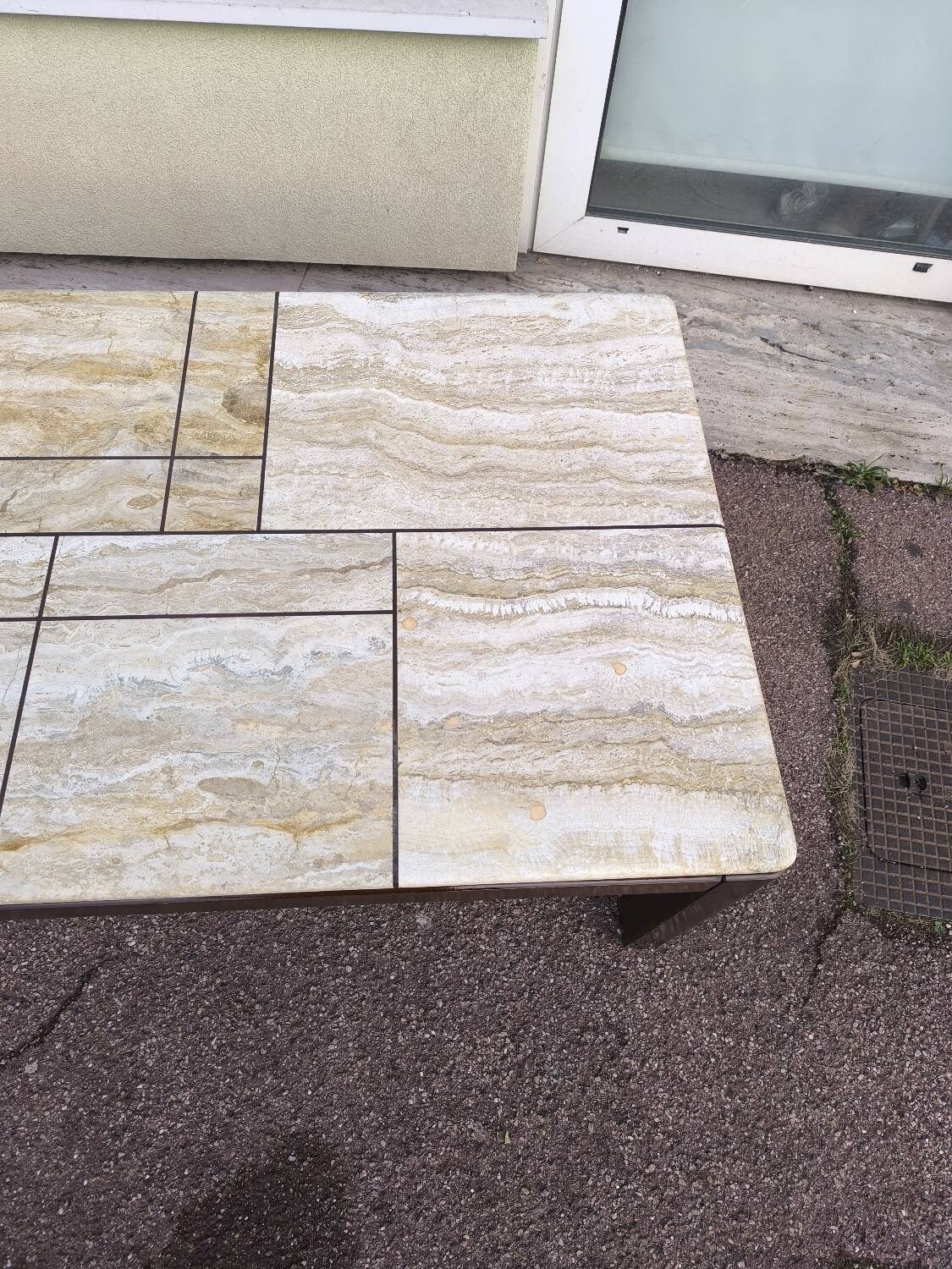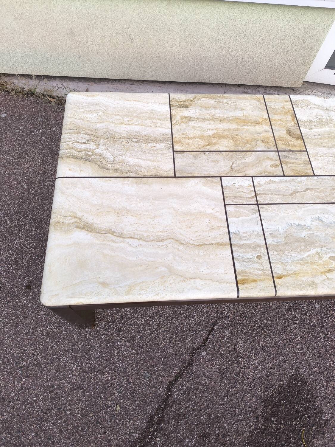 TABLE BASSE PLACAGE DE TRAVERTIN ÉPOQUE 1970 DESIGN