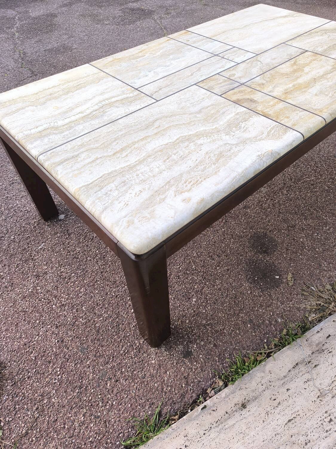 Table basse en bois et travertin 1970 1980 Vintage Marron Marbre