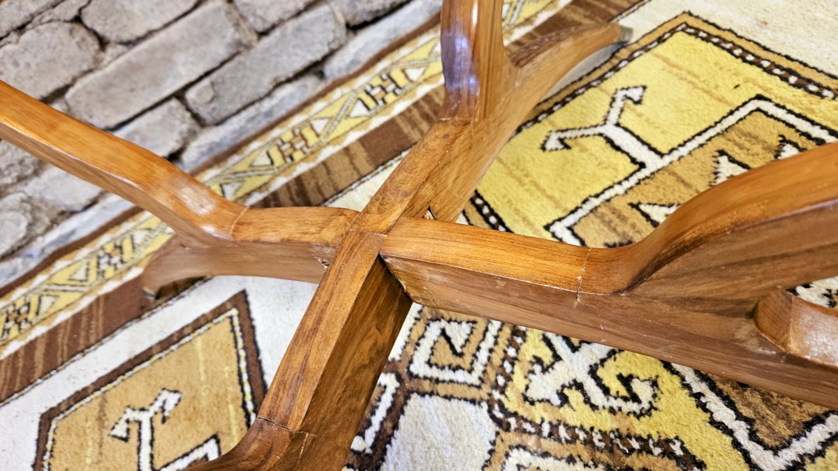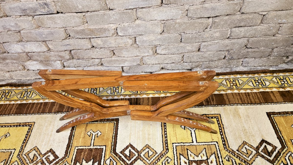⁃ Structure en bois sculptée avec des détails raffinés, témoignant d'un savoir-faire artisanal.