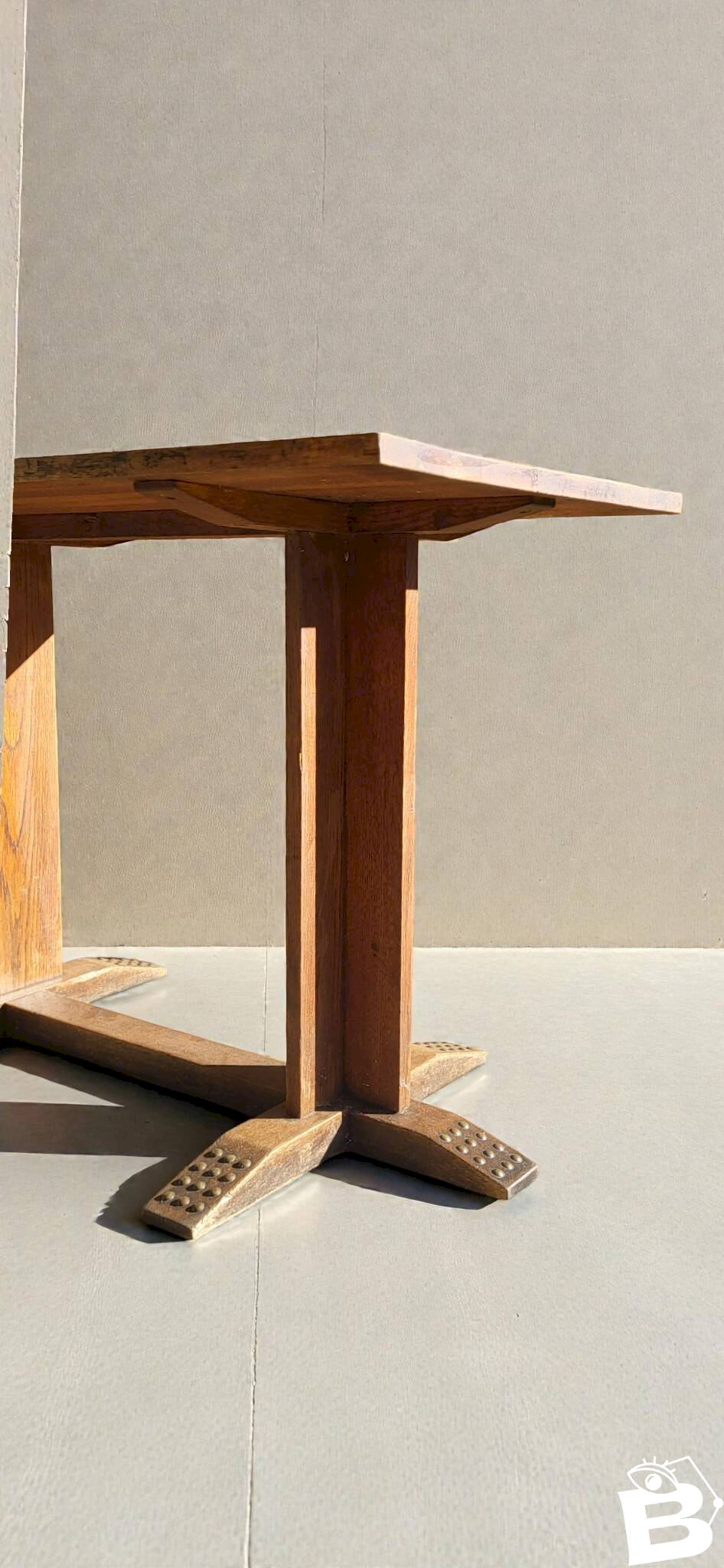 Table bistrot entièrement en chêne / pieds cloutés.Stables / solides /Elles sont toutes en bon état avec traces d 'usage minimes.Dimensions 59*110 cm.Hauteur 72, 5 cm.