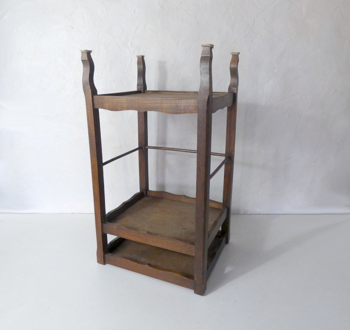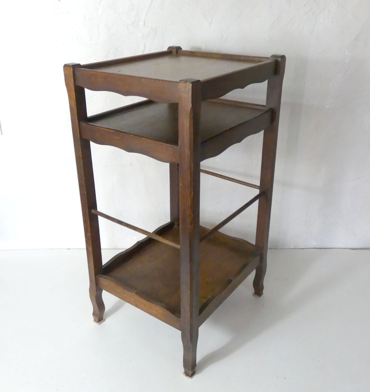 Ancien petit meuble d'appoint. Parfait en bout de canapé pour plus de rangement, pour poser une lampe, ou pour mettre en valeur des plantes. Conviendra pour toutes les pièces de la maison. Peu encombrant, facile à déplacer. C'est un meuble en bois massif, il est stable et robuste, avec de beaux assemblages. Hauteur: 85 cm. Largeur: 50 cm. Profondeur: 34 cm. Il est en très bon état.