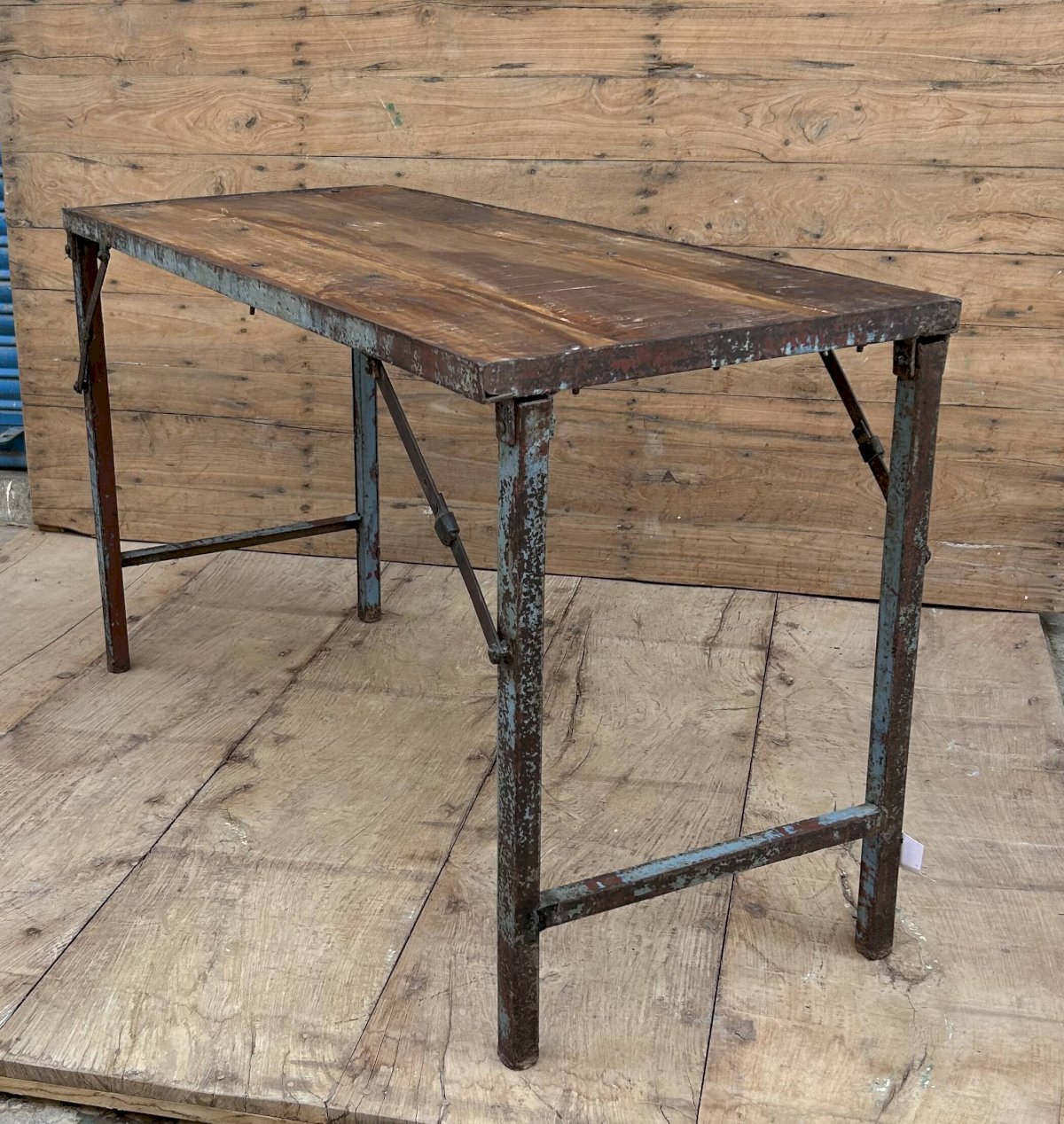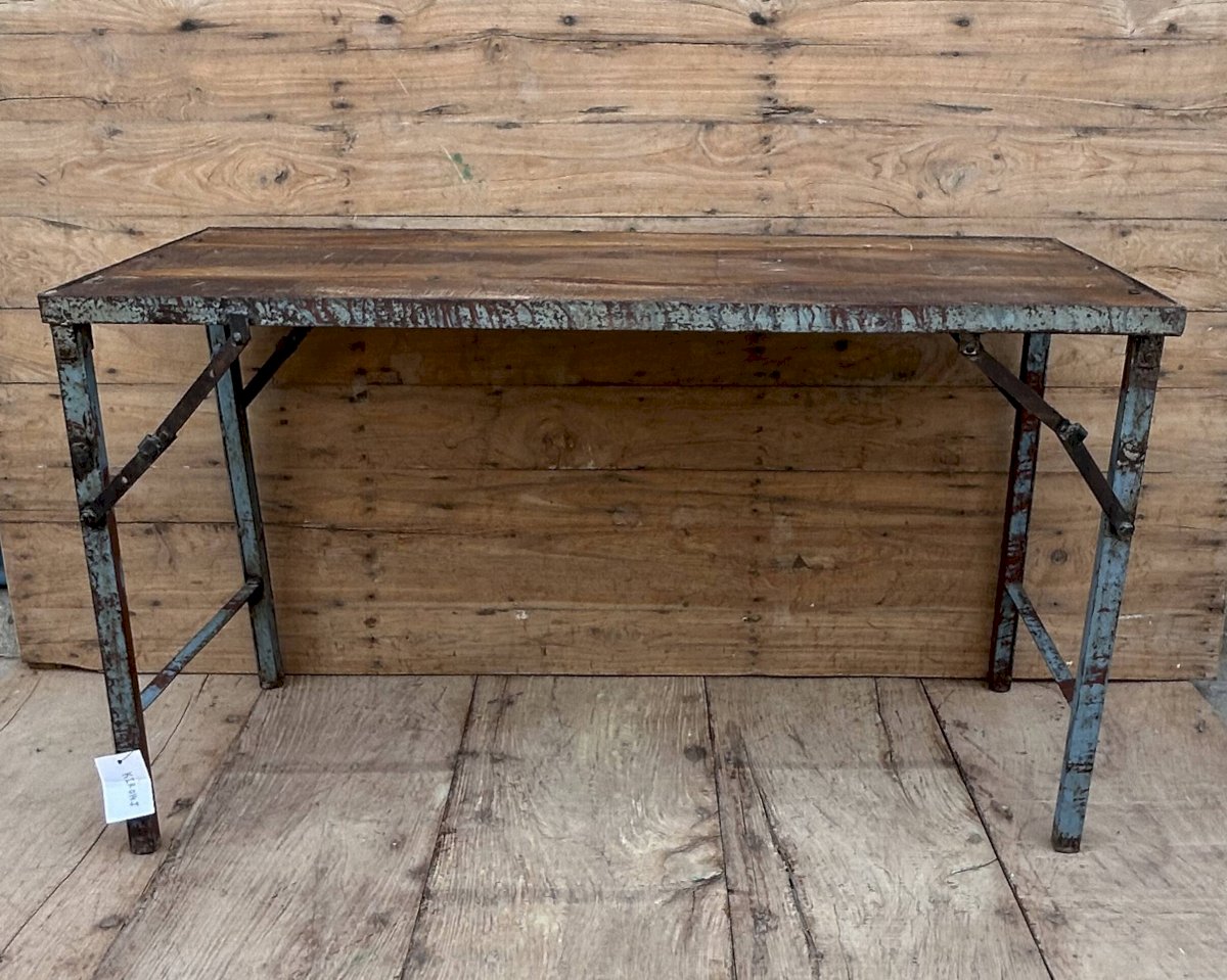 Table datelier pliante structure métal avec plateau en teck massif Industriel Bleu