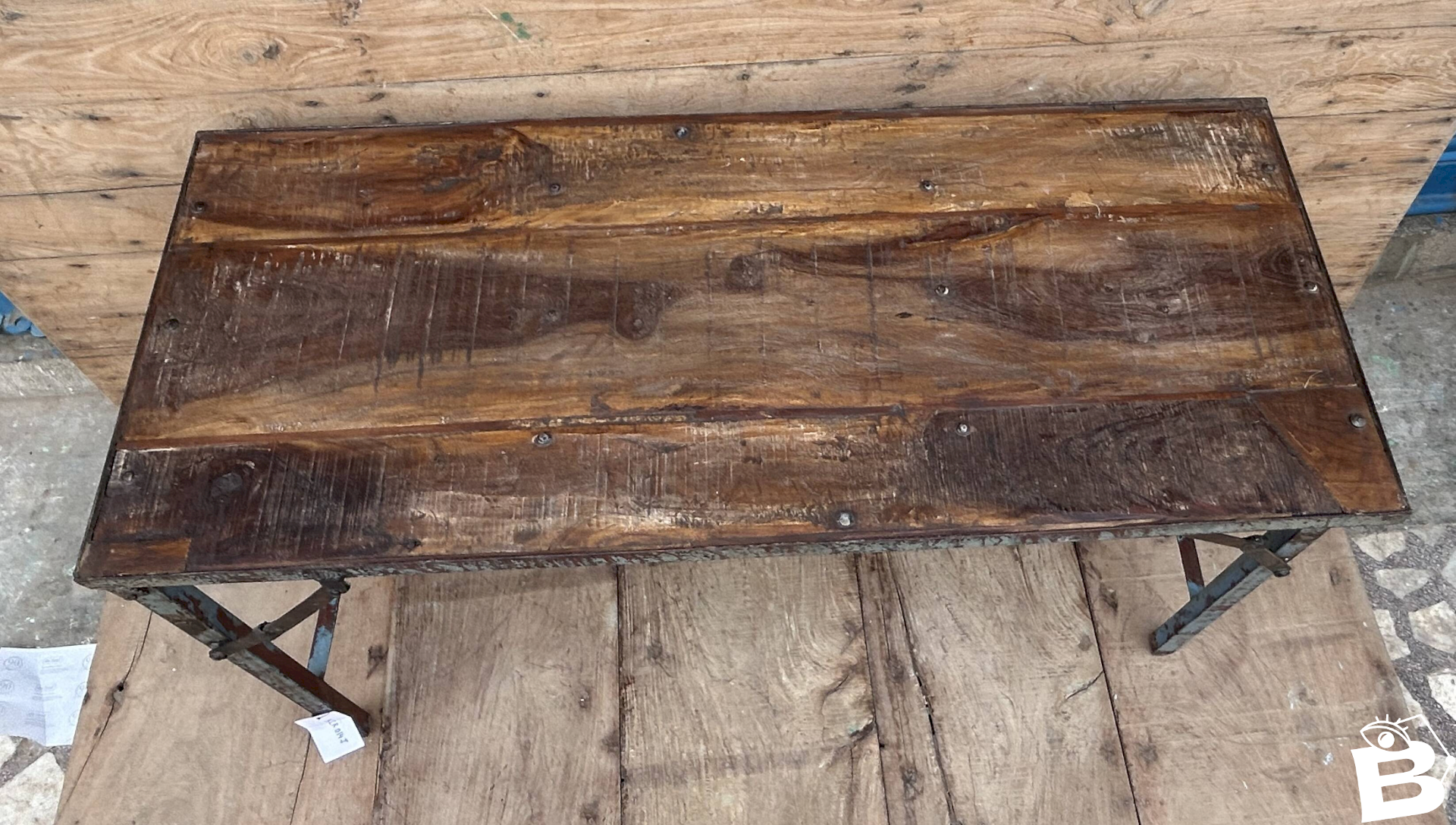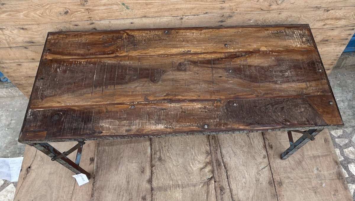 Table d'atelier pliante structure métal avec plateau en teck massif / construction solide et très bonne stabilité / 122 x 52 x 73 cm - 30 kg - taille pliée 122 x 52 x 8 cm