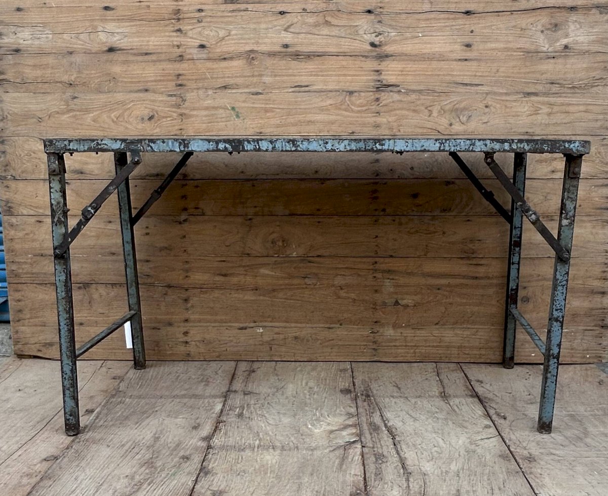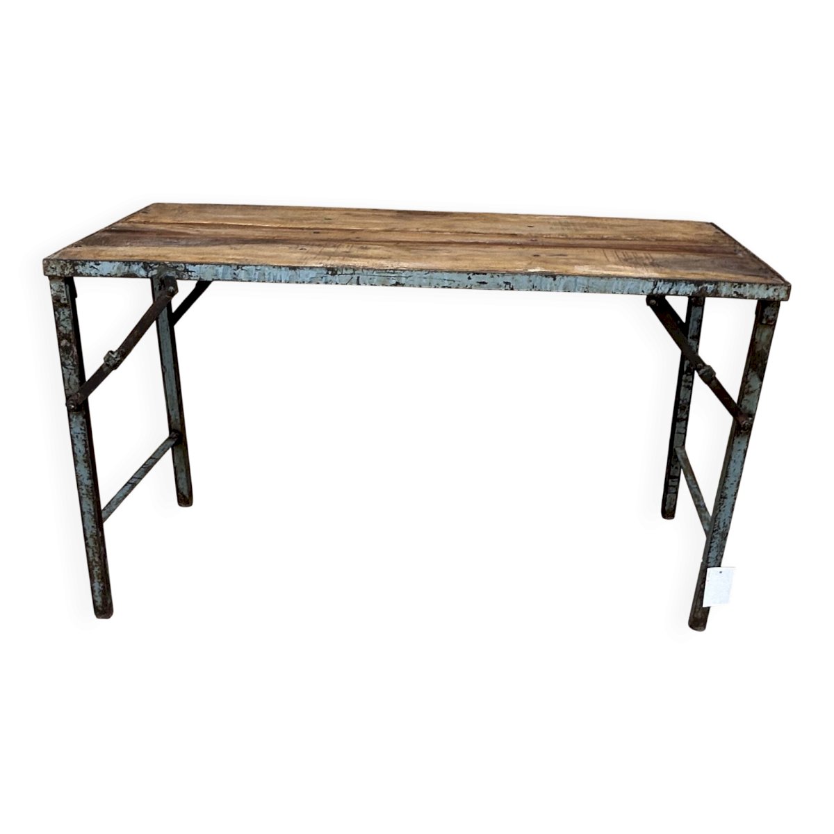Table datelier pliante structure métal avec plateau en teck massif Industriel Bleu