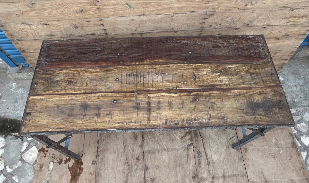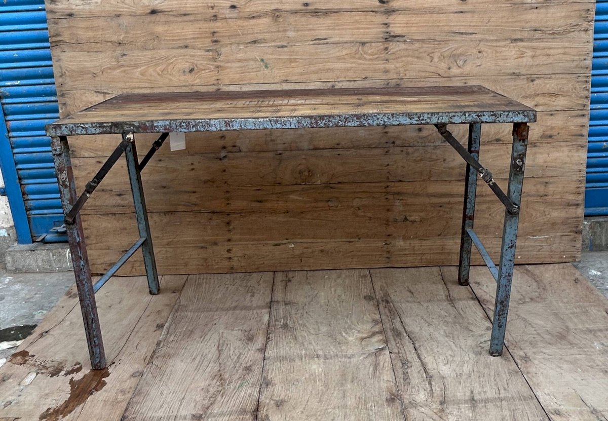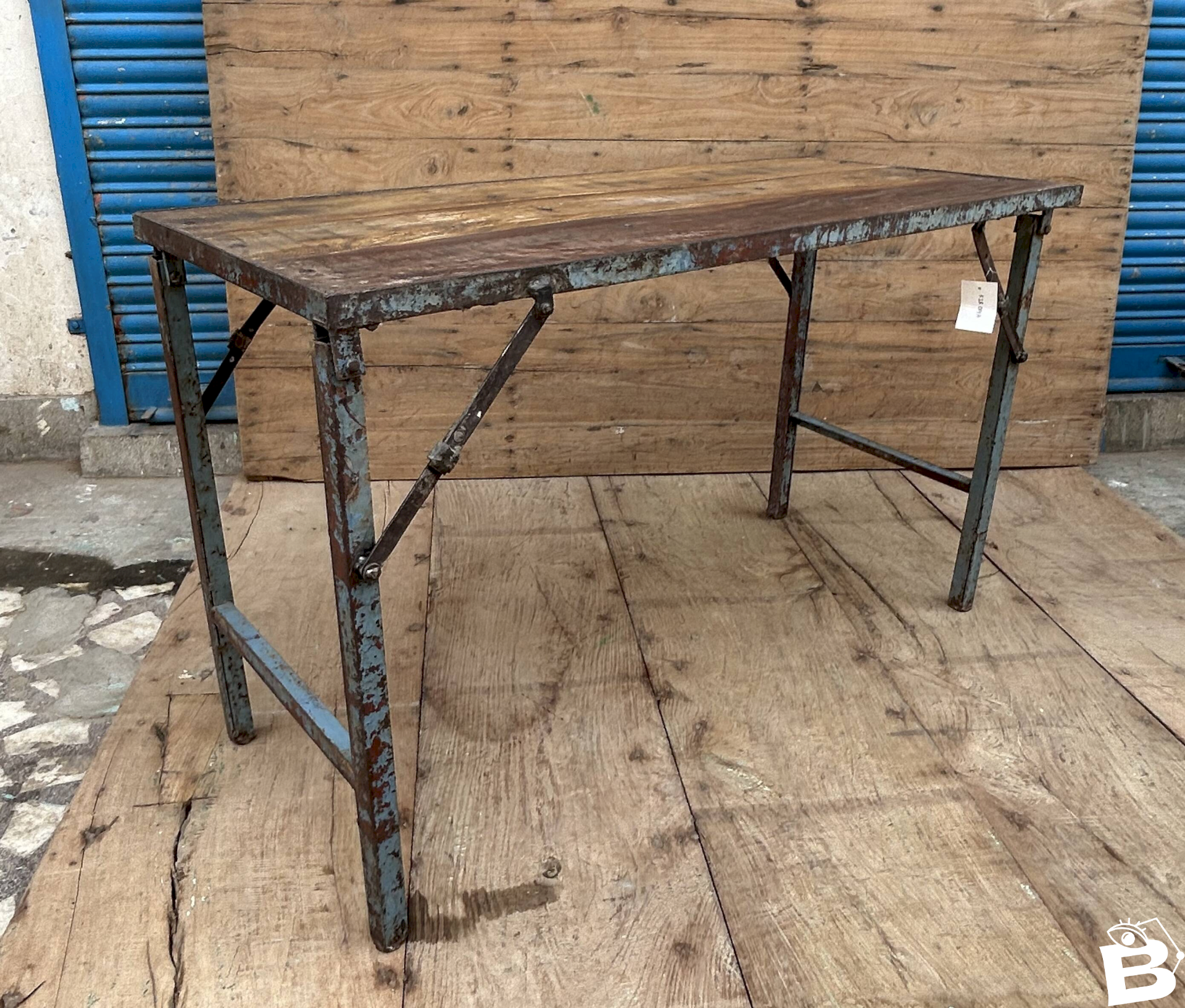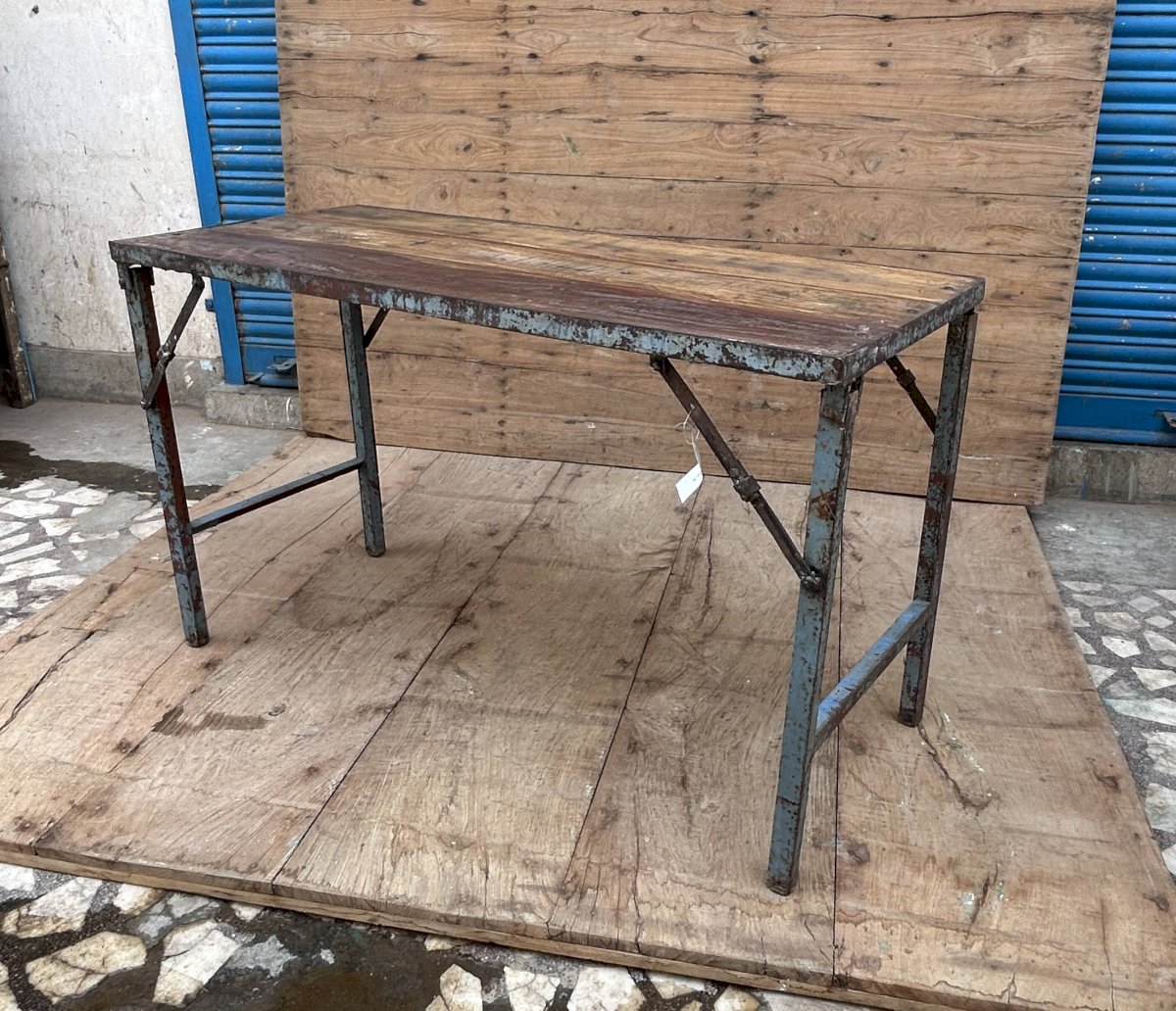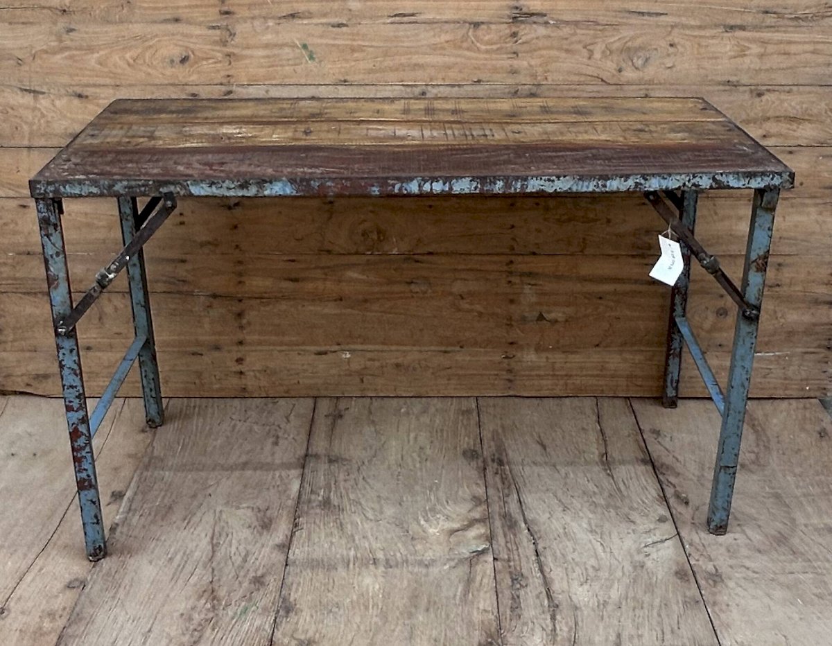 Table datelier pliante structure métal avec plateau en teck massif Industriel Bleu