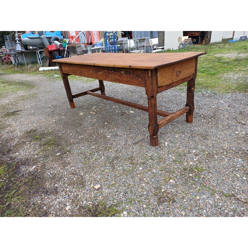 Table de Ferme Campagnarde 19 éme Noyer et Pin , 3 Tiroirs