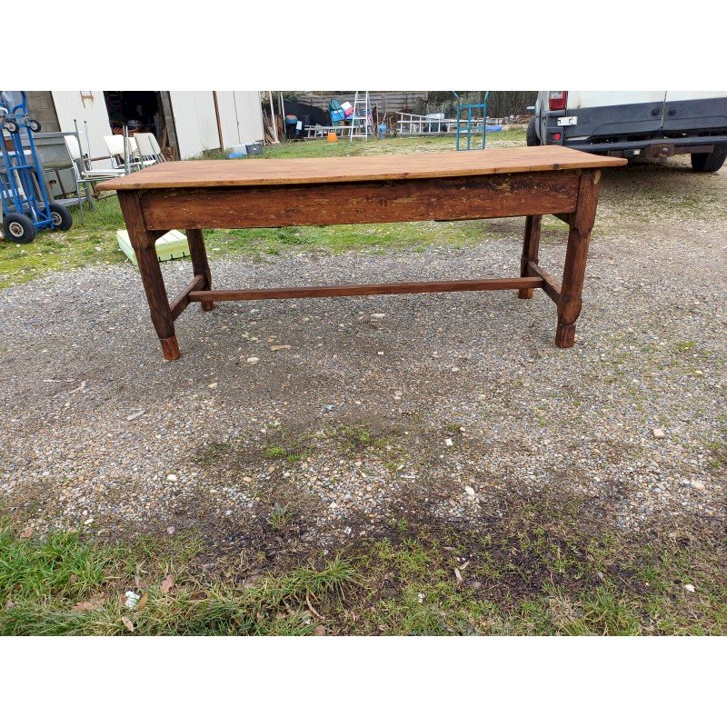 Table de Ferme Campagnarde 19 éme Noyer et Pin , 3 Tiroirs , Haut : 80 cm , Haut sous Bandeaux : 61 cm , long et larg : 205 cm sur 85 cm , trés bon ètat