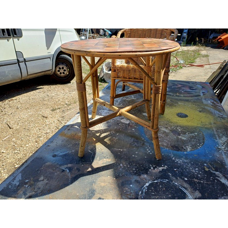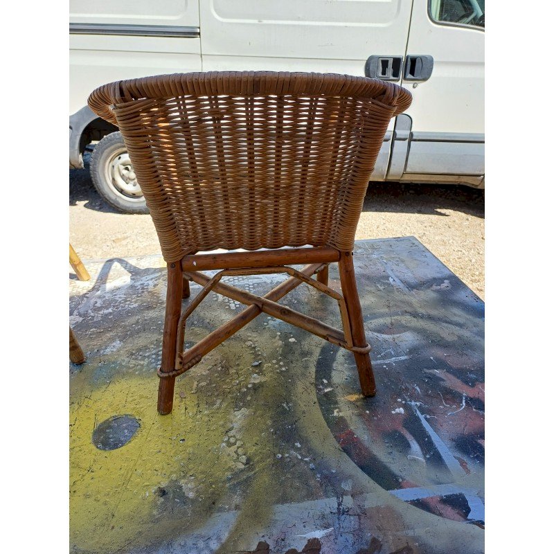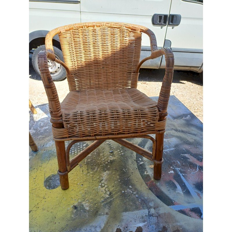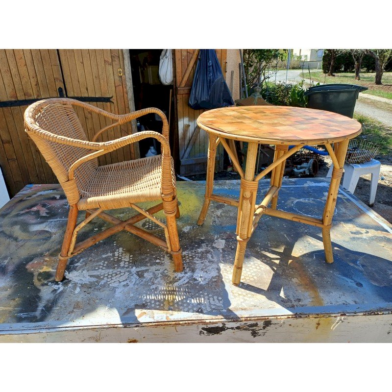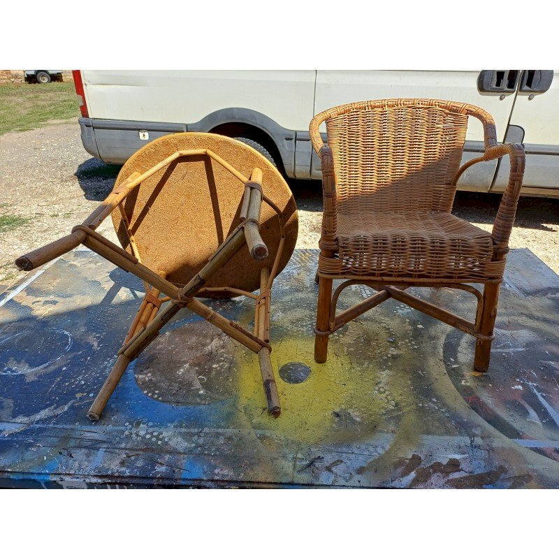 Table + Fauteuil Enfant Bambou et Rotin Vintage