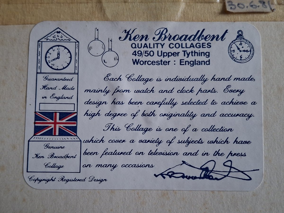 Tableau authentique Ken Broadbent réalisé avec des pièces d'horlogerie