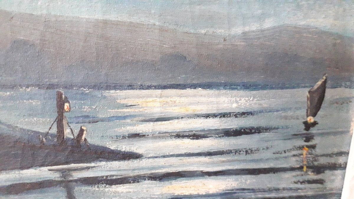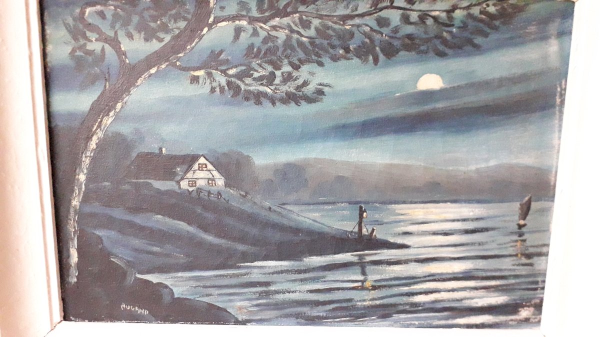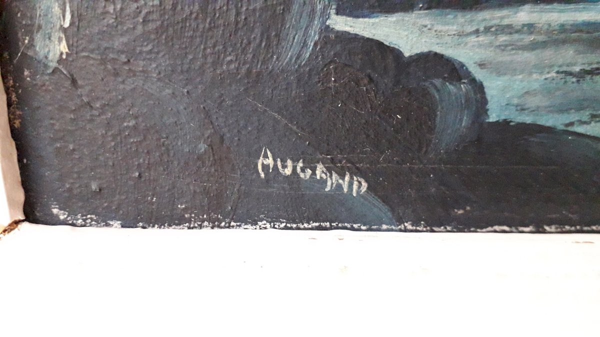 Tableau, huile sur toile, signé en bas à gauche "Augand" (à vérifier), représentant un clair de lune.