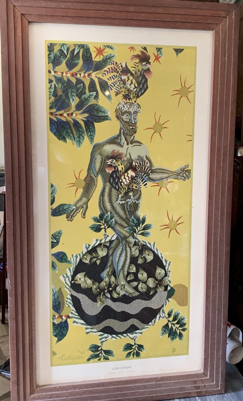 Tableau lithographie Jean Lurçat l'homme fait son nid fragment copyright 1950's