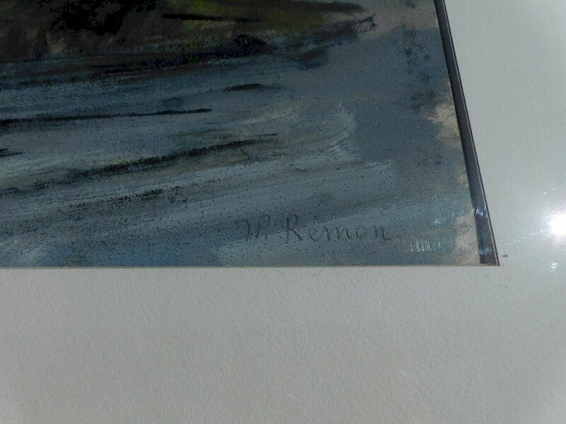 superbe tableau peinture huile sur papier signé JR Remon il est en très bon état il a un cadre doré monté avec un passe partout il a juste un petit manque de dorure sur le cadre en bas à gauche le cadre mesure 79 cm de large sur 64.5 cm de haut la peinture mesure 62 cm de large sur 47 cm de haut   Type:Huile Caractéristiques:Encadré, Signé Thème:Paysage