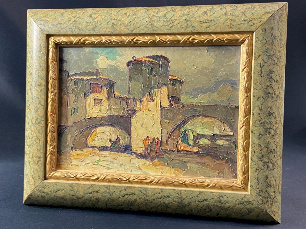 Tableau signé Louis PASTOUR 1876-1948 Vue du pont de Sospel (Provence)